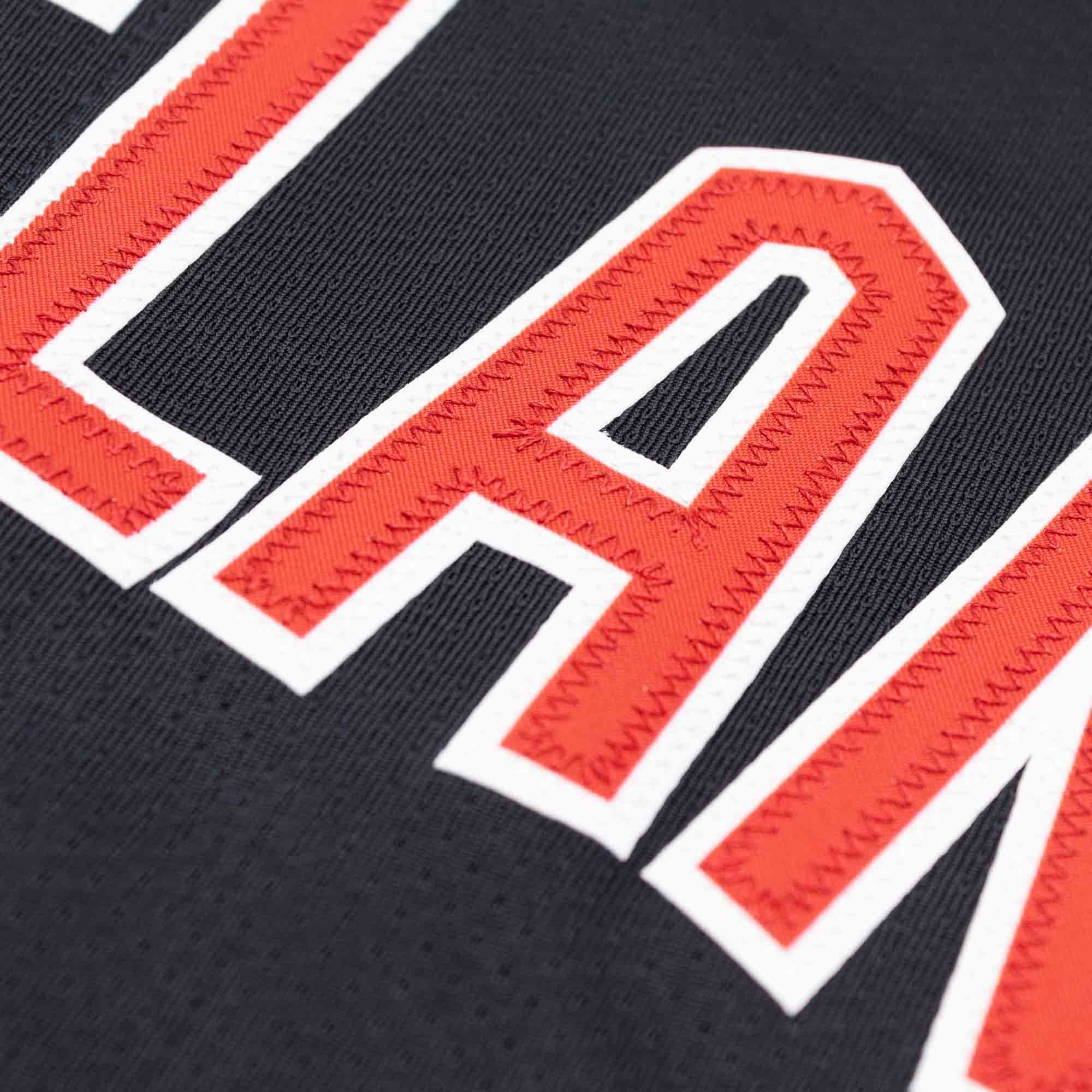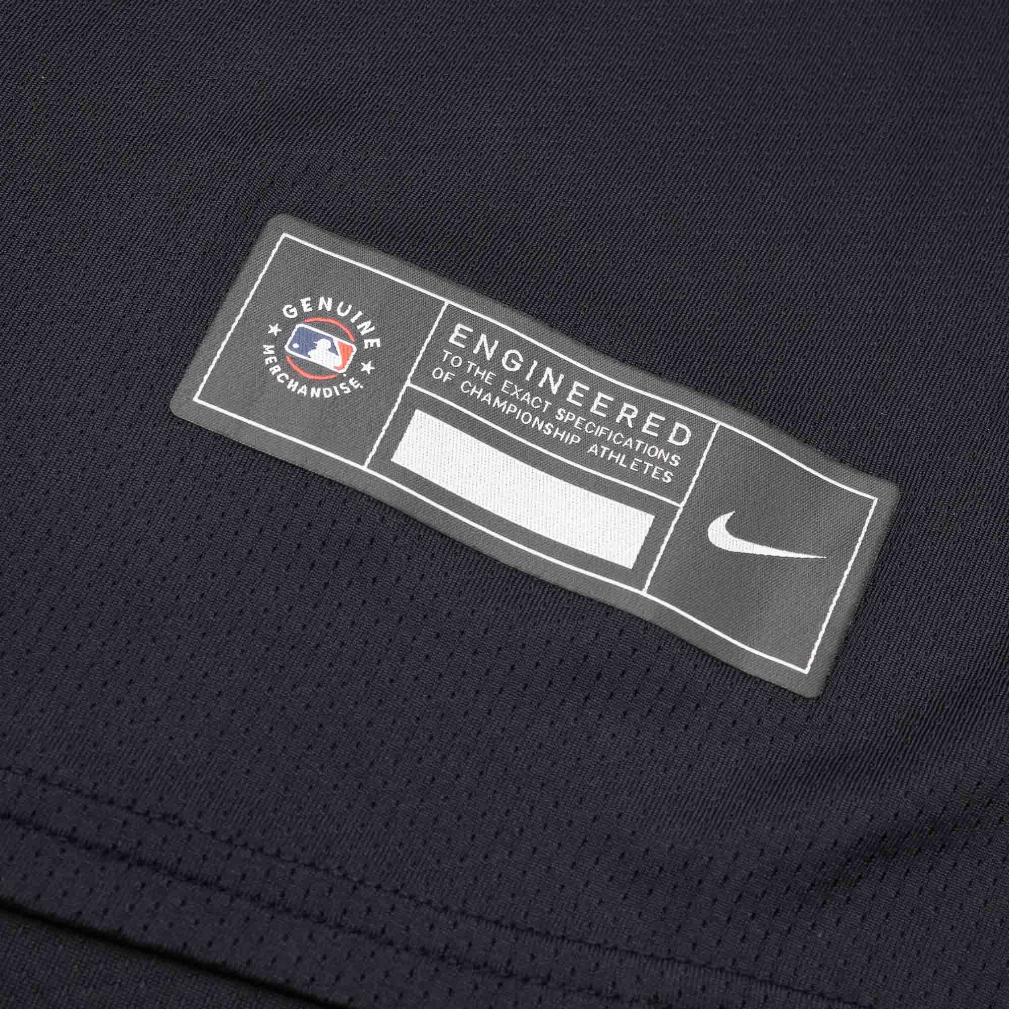 Dieses Cleveland Guardians Alternate Trikot ist von den Spieluniformen deiner Lieblings-MLB-Mannschaft inspiriert und bietet einen authentischen Look mit Twill-Details. Das schweißableitende, doppelt gestrickte Mesh-Gewebe sorgt für ein atmungsaktives, angenehmes Tragegefühl am Spieltag. Auf der Vorderseite ist das Cleveland Guardians Wordmark Logo als Heat-Sealed Logo mit Zickzack-Nähten aufgebracht. Das Nike Swoosh ist aufgestickt. Der rechte Ärmel ist mit dem Team Logo Patch dekoriert. Die Rückseite ziert das MLB Batterman Logo am Kragen. Am vorderen Saum befindet sich das Nike Jock Tag.