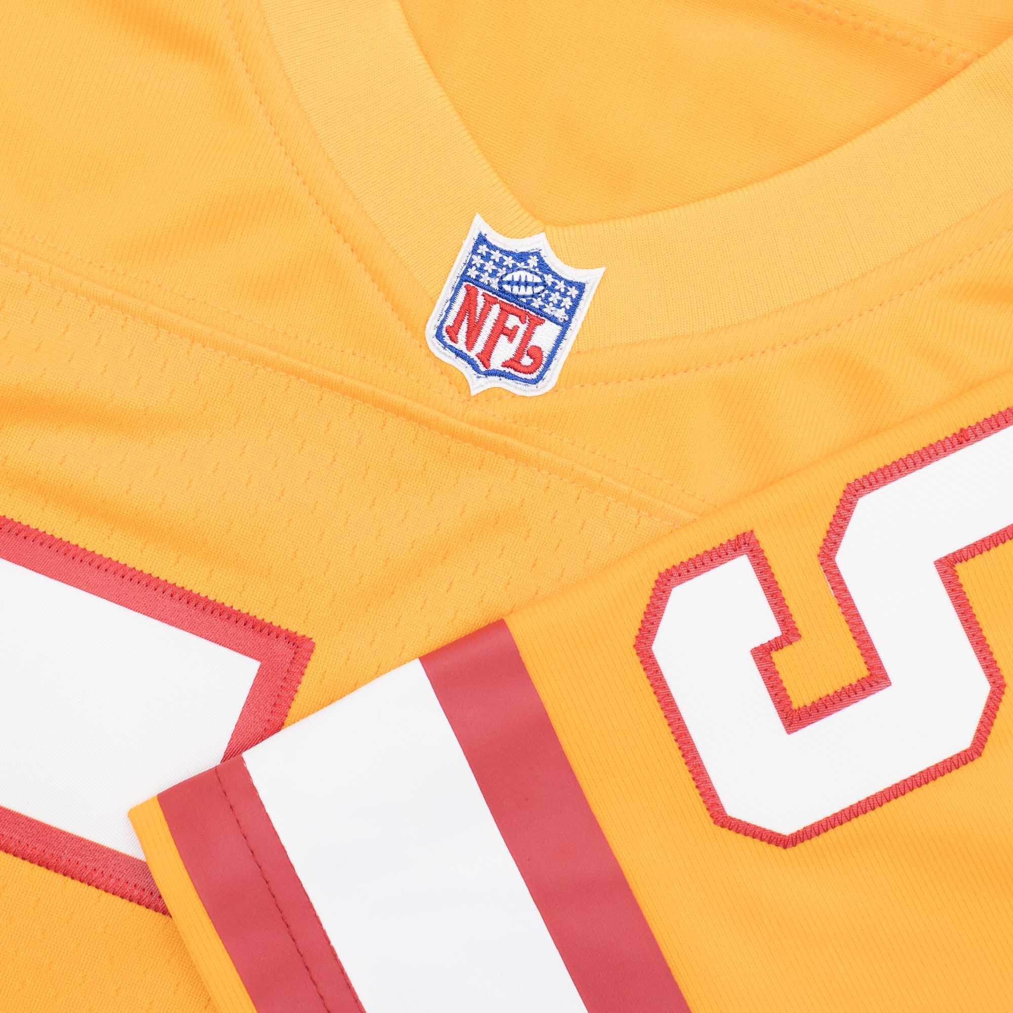 Die Mitchell & Ness NFL Trikots aus der Throwback Collection sind ein Must-Have für jeden Football Fan und eine Erinnerung an die besten Spieler und Legenden dieses Sports! Dieses Derrick Brooks NFL Throwback Trikot besteht zu 100% aus Polyester mit Mesh-Einlagen und bietet eine klassische Passform mit etwas mehr Platz an der Taille und den Ärmeln. Alle Zahlen und Buchstaben sind hochwertig aufgenäht - die Ärmelstreifen sind aufgedruckt - und entsprechen dem offiziellen NFL-Design der damaligen Tampa Bay Buccaneers Trikots (1995). Das NFL-Shield am Kragen ist genauso wie das NFL-Mitchell & Ness Label (Legacy Collection) am Saum aufgenäht.