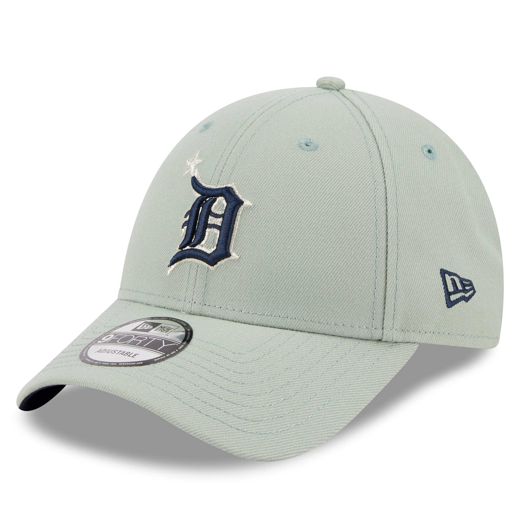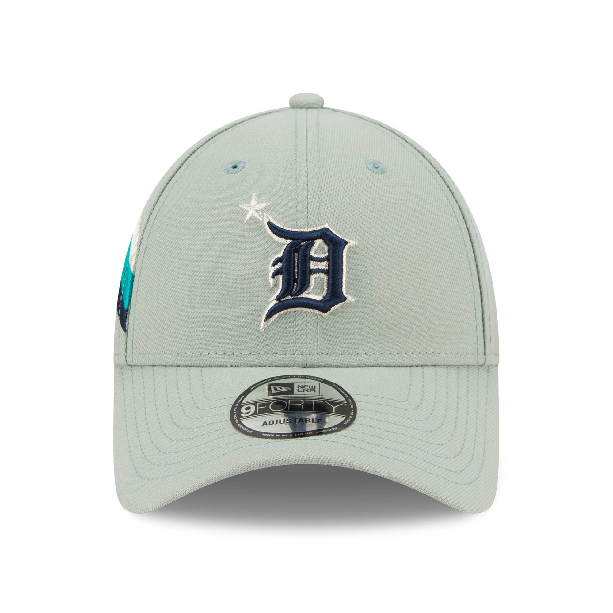Die mintgrüne 2023 MLB All-Star Game Adjustable Cap zelebriert mit der besonderen Farbgebung den Spielort Seattle und sorget für einmaligen Team-Support. Die Cap-Vorderseite ist mit dem zweifarbigen Detroit Tigers Teamlogo im silber-blauen Look dekoriert. Als besonderes Extra ist die rechte Capseite mit dem 2023 ASG Logo und dynamischen Streifen bestickt. Die Schirmunterseite ist navyblau.