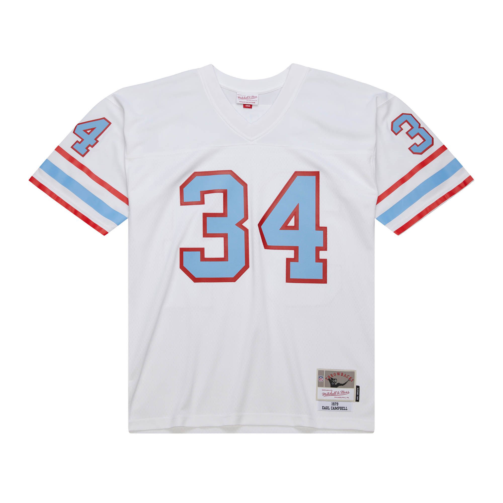 Mitchell & Ness NFL Herren American Football Trikot von Earl Campbell, Running Back Legende der Houston Oilers im 1979 Legacy Throwback Design.