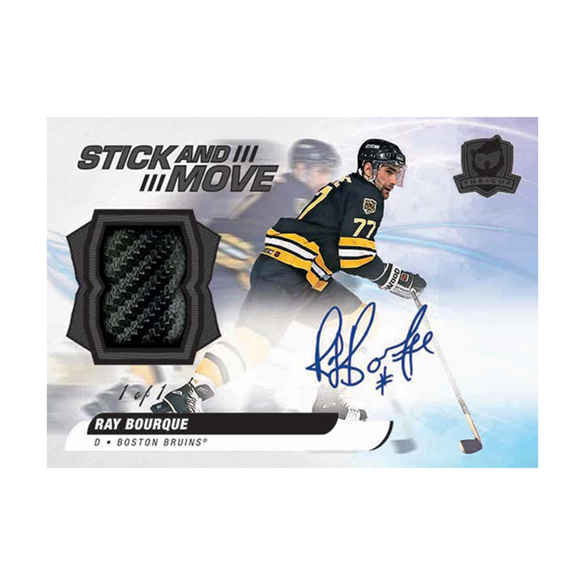Stick & Move: This incredible new #'d set features game-used stick from current stars and legends of the game. Look for Gold Foil Auto (Varied #'ing) and Black Foil Auto (#'d 1-of-1) parallels, each of which sport hard-signed autographs.