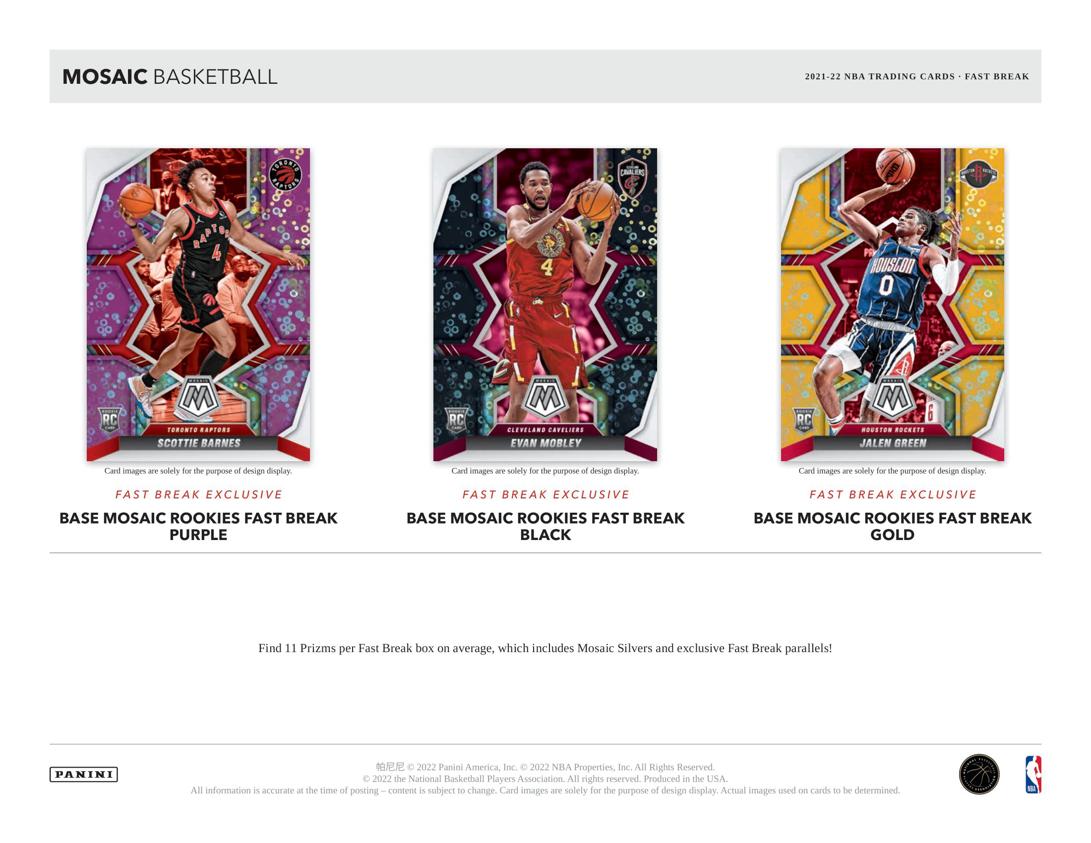 BASE MOSAIC: Find 11 Prizms per Fast Break box on average, which includes Mosaic Silvers and exclusive Fast Break parallels!