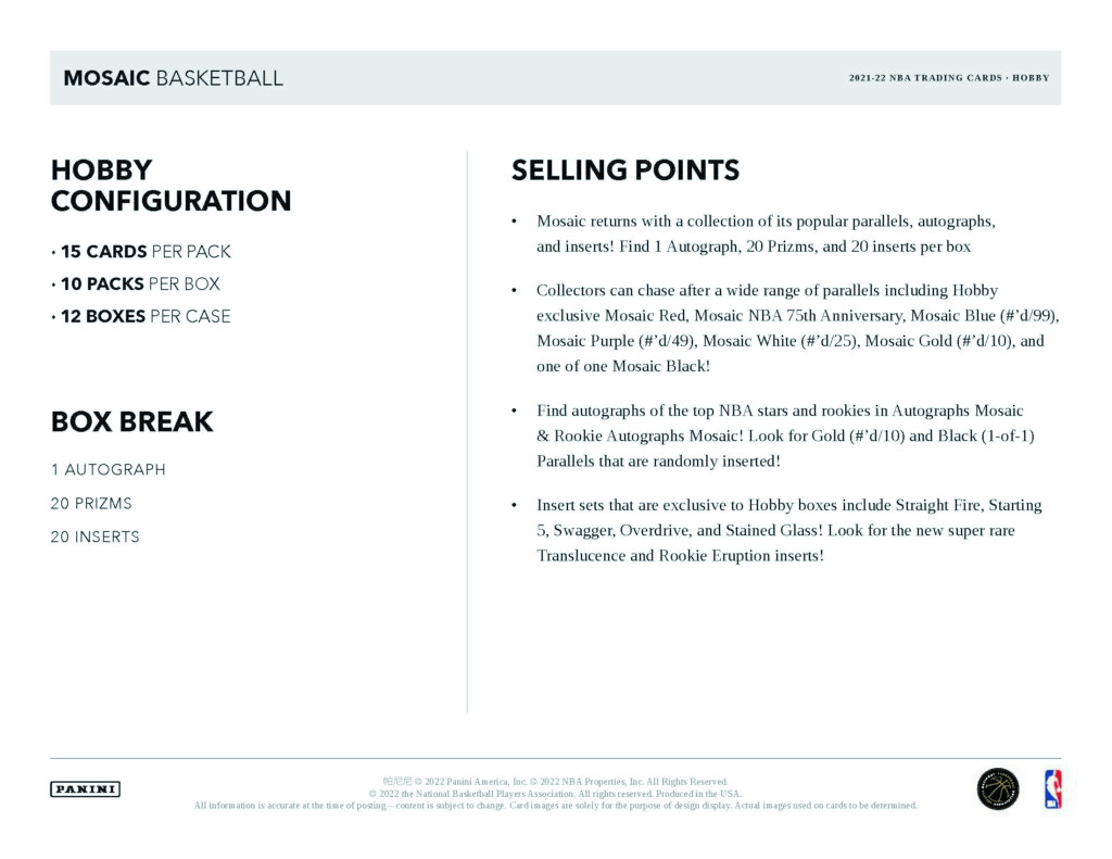 2021/22 Panini Mosaic Basketball NBA Hobby Box