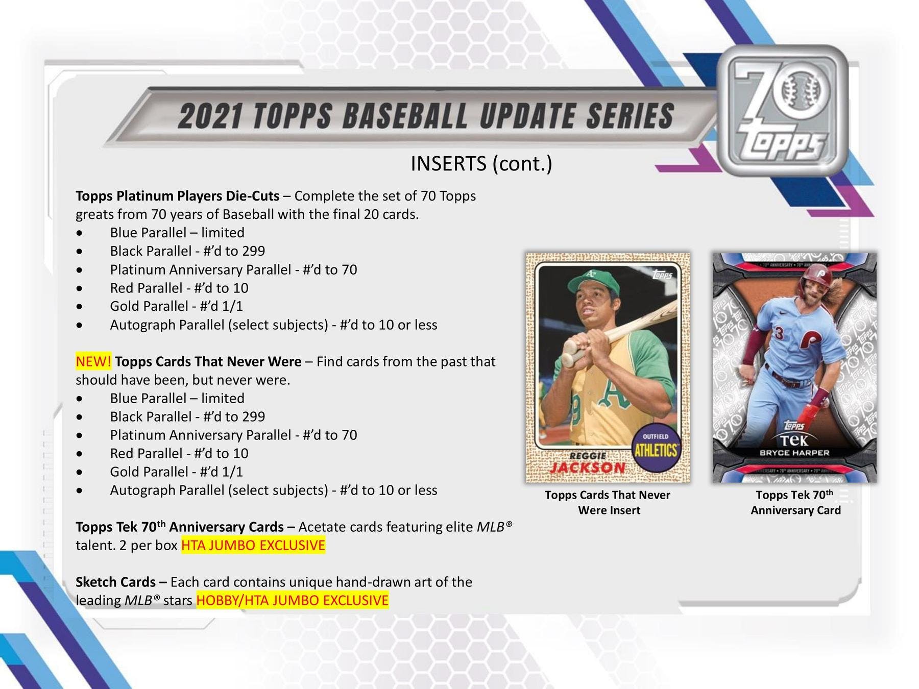 Each card contains unique hand-drawn art of the leading MLB stars HOBBY/HTA JUMBO EXCLUSIVE
