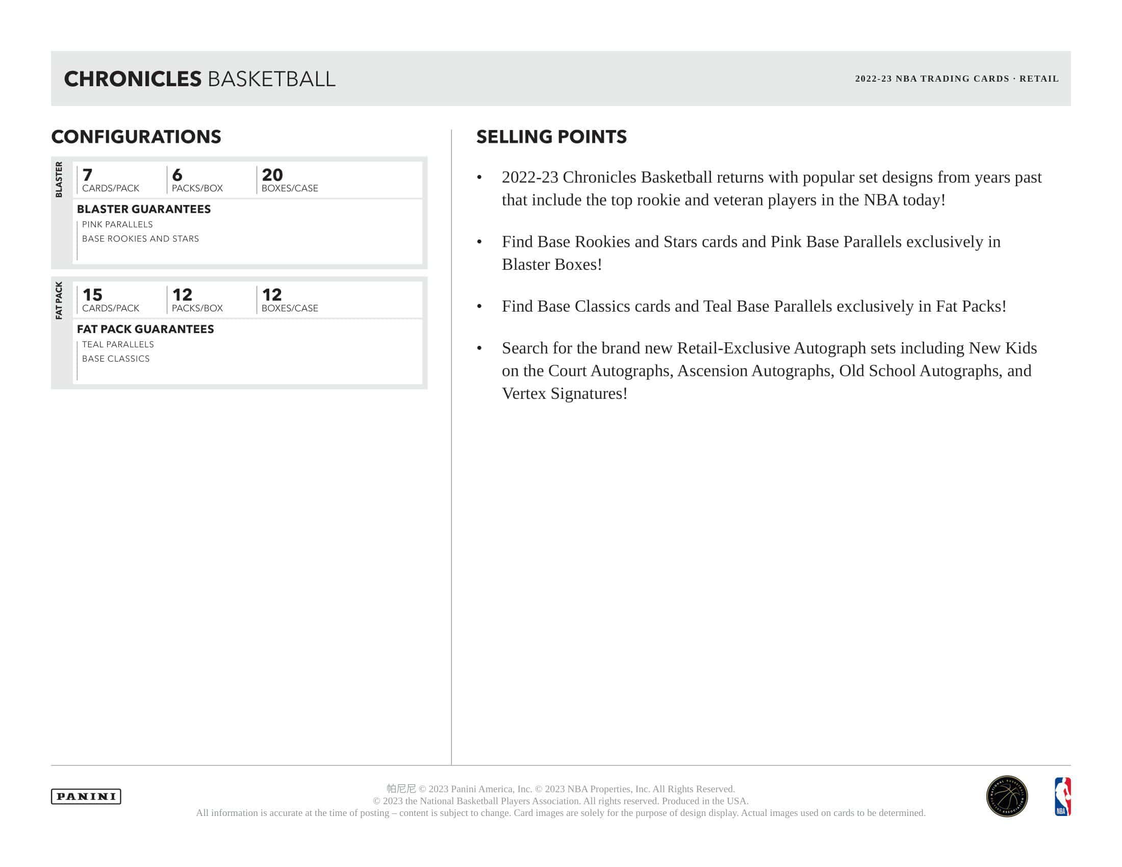 2022-23 Chronicles Basketball returns with popular set designs from years past that include the top rookie and veteran players in the NBA today!