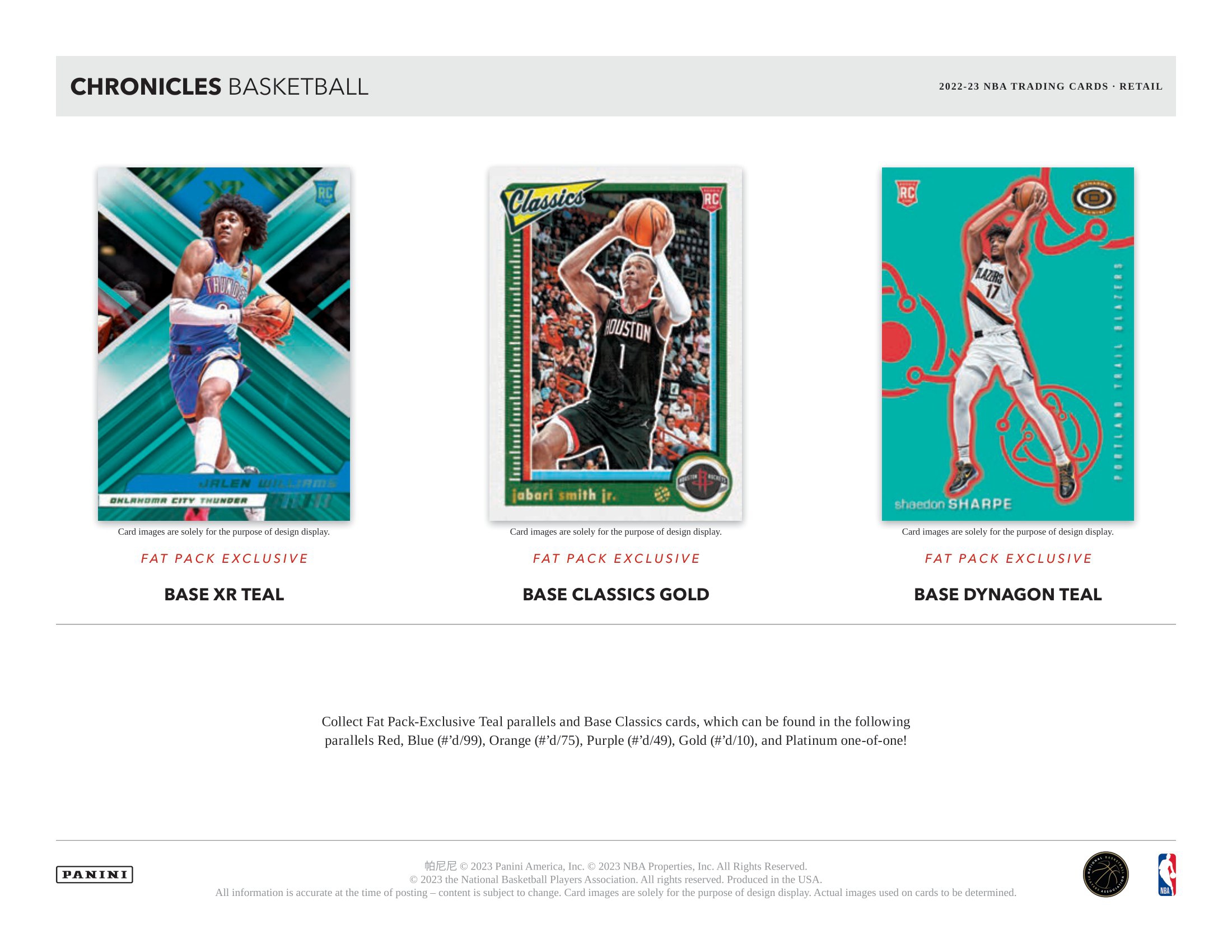 Collect Fat Pack-Exclusive Teal parallels and Base Classics cards, which can be found in the following parallels Red, Blue (#'d/99), Orange (#'d/75), Purple (#'d/49), Gold (#'d/10), and Platinum one-of-one!