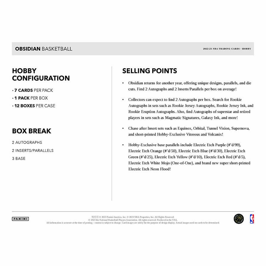 2022/23 Panini Obsidian Basketball NBA Hobby Box