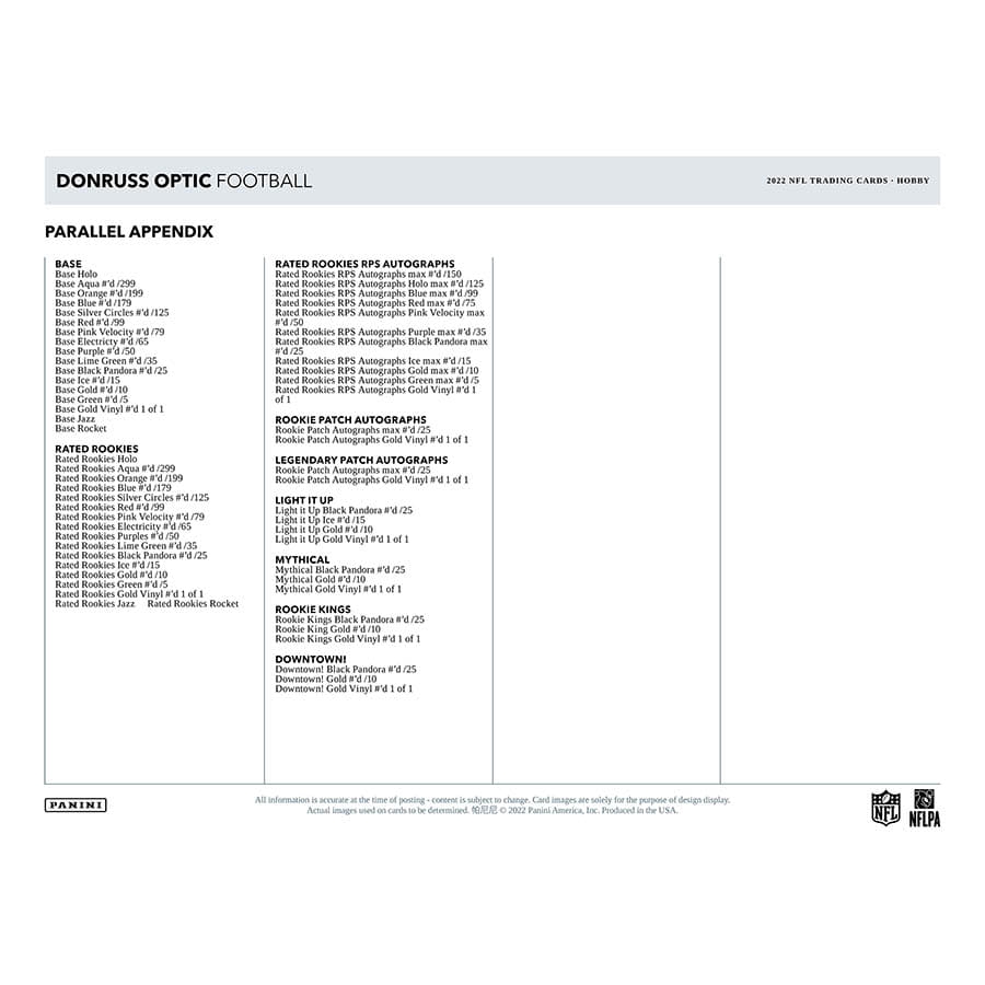 New in 2022, look for Electricity and Jazz parallels within the Base and Rated Rookies sets!