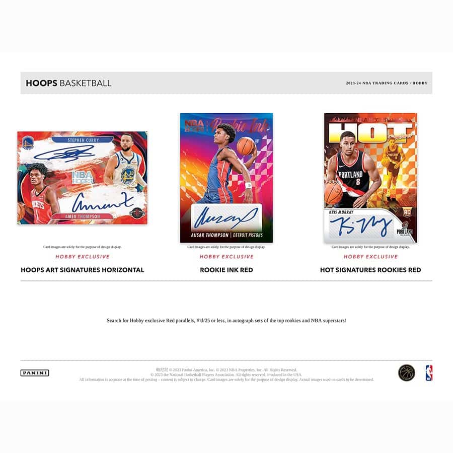 HOOPS ART SIGNATURES / ROOKIE INK / HOT SIGNATURES ROOKIES: Search fot Hobby-exclusive Red parallels, #'d /25 or less, in autograph sets of the top rookies and NBA superstars!