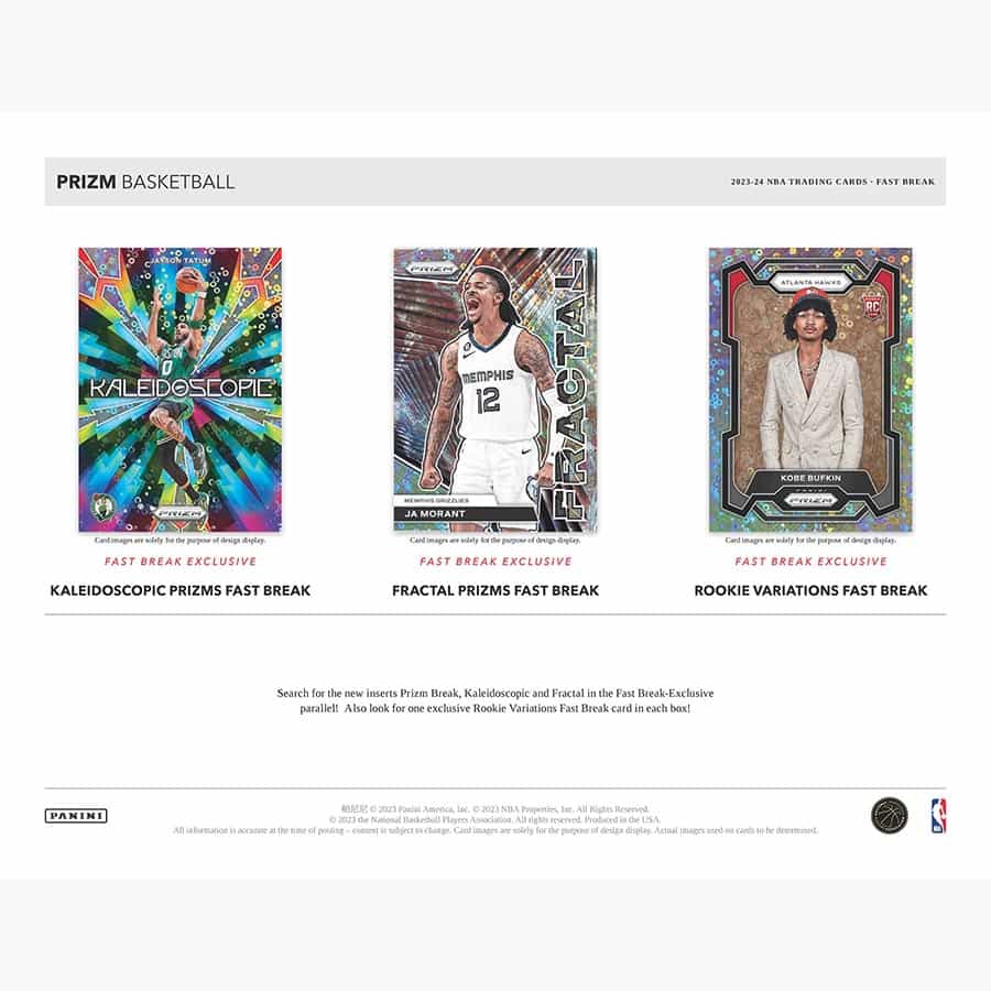 KALEIDOSCOPIC FAST BREAK / FRACTAL FAST BREAK / ROOKIE VARIATIONS FAST BREAK: Search for the new inserts Prizm Break, Kaleidoscopic and Fractal in the Fast Break-Exclusive parallel! Also look for one exclusive Rookie Variations Fast Break card in each box!