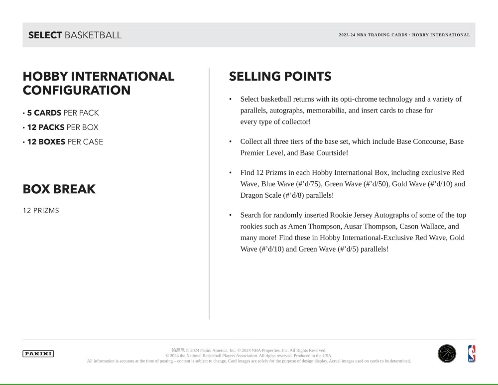 2023/24 Panini Select Basketball NBA Hobby International Box