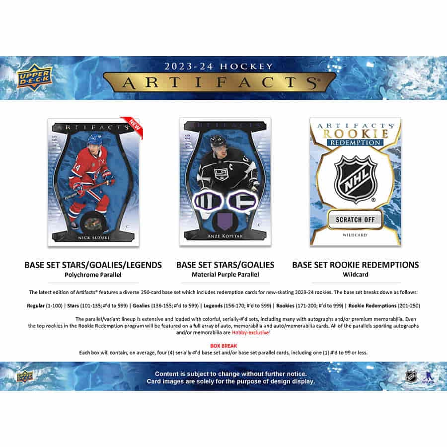 The latest of Artifacts features a diverse 250-card base set which includes redemption cards for new-skating 2023-24 rookies. The base set breaks down as follows (subject to change):