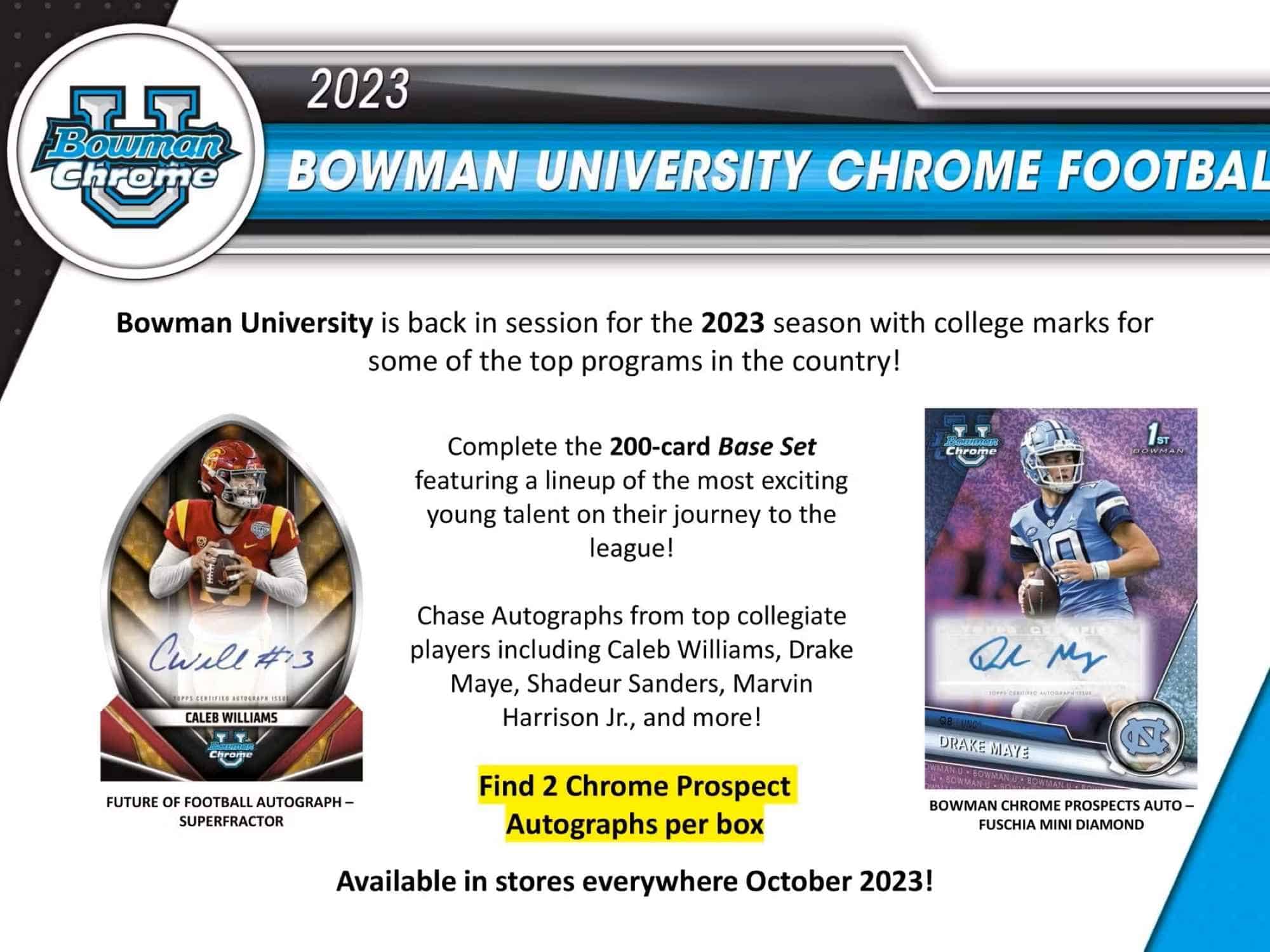 Chase Autographs from the top collegiate players including Caleb Williams, Drake Maye, Shadeur Sanders, Marvin Harrison Jr. and more!