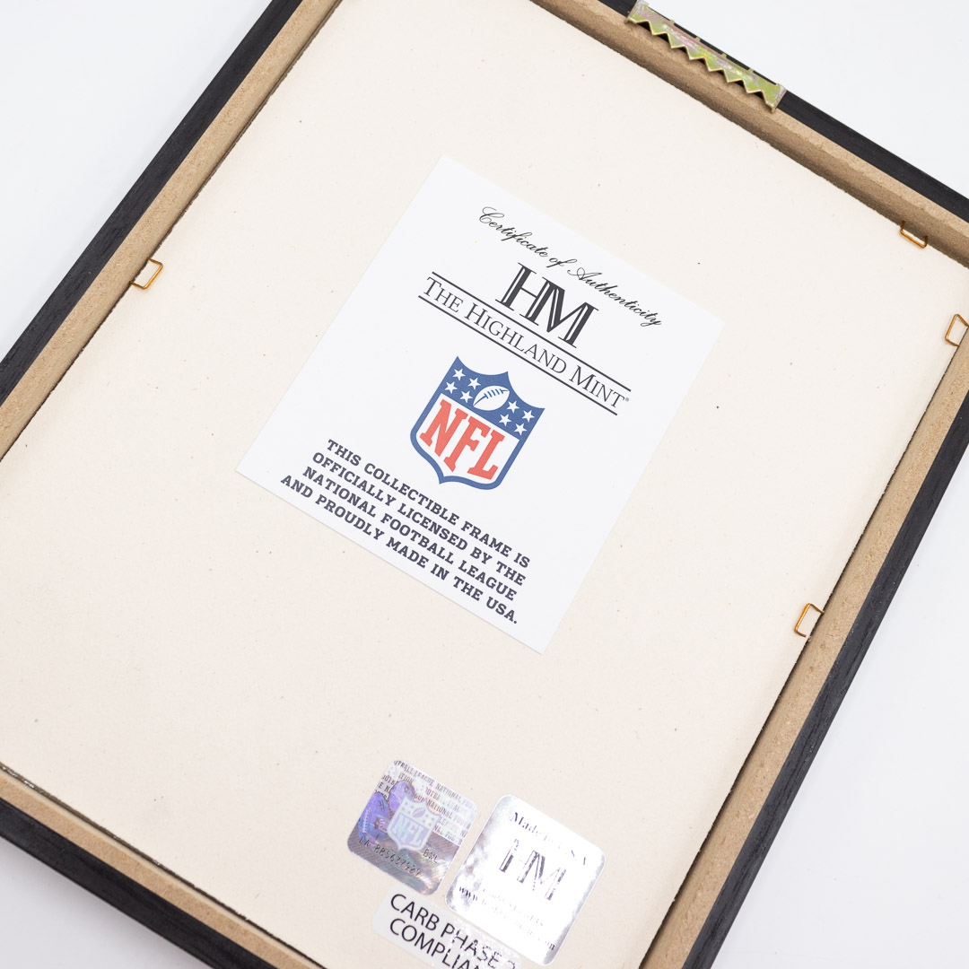 It is officially licensed by the NFL and is accompanied with a certificate of authenticity. Proudly made in the U.S.A. by The Highland Mint.