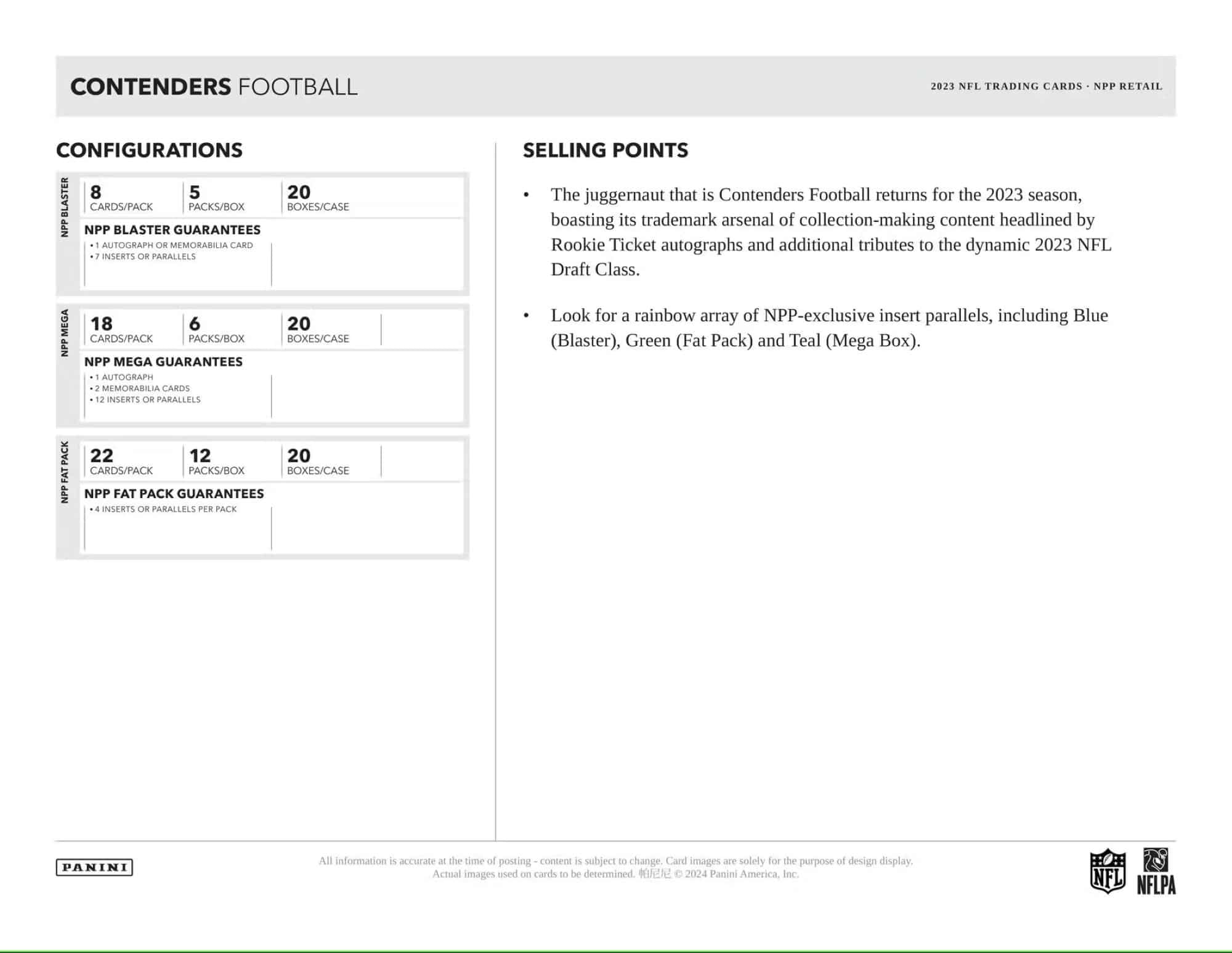 The juggernaut that is Contenders Football returns for the 2023 season, boasting its trademark arsenal of collection-making content headlined by Rookie Ticket autographs and additional tributes to the dynamic 2023 NFL Draft Class.