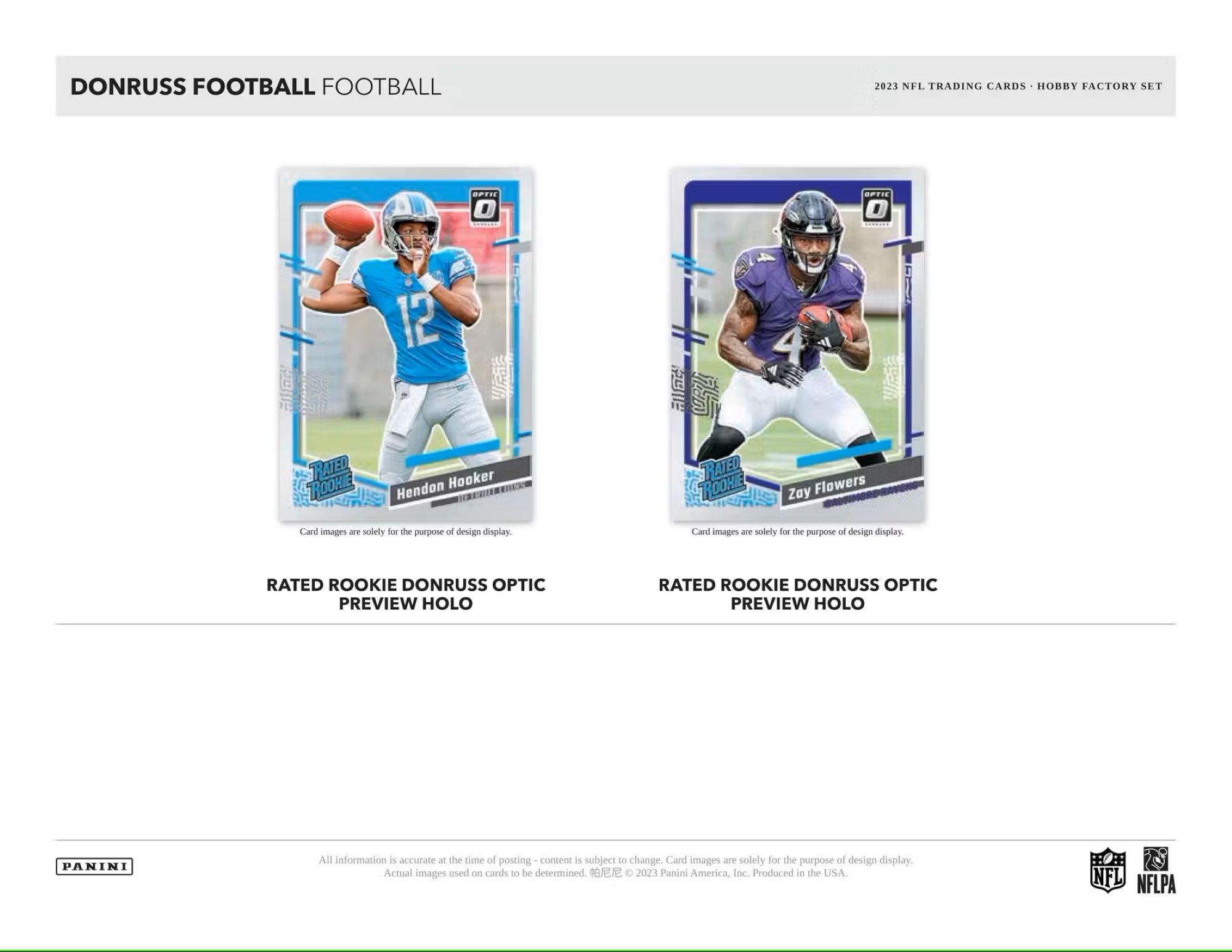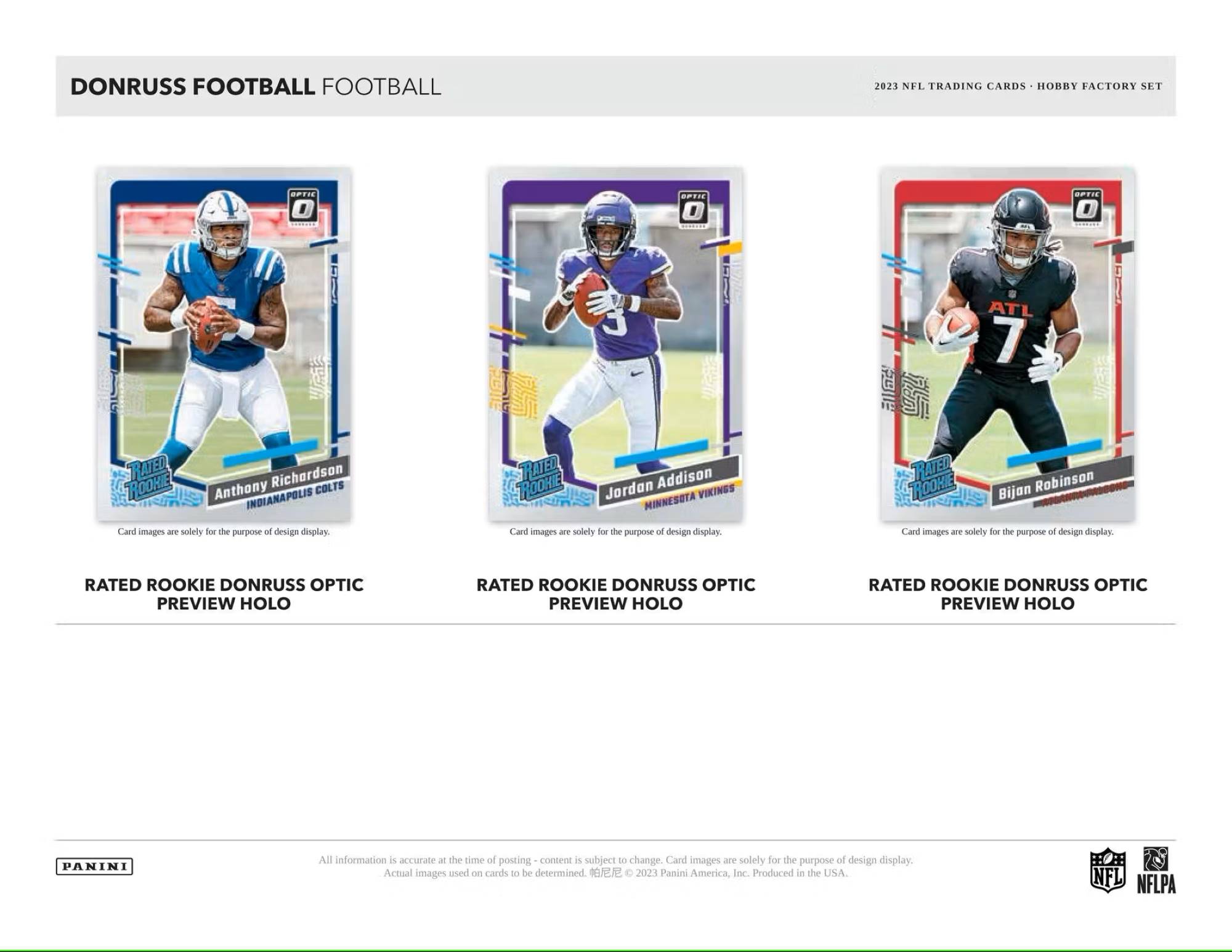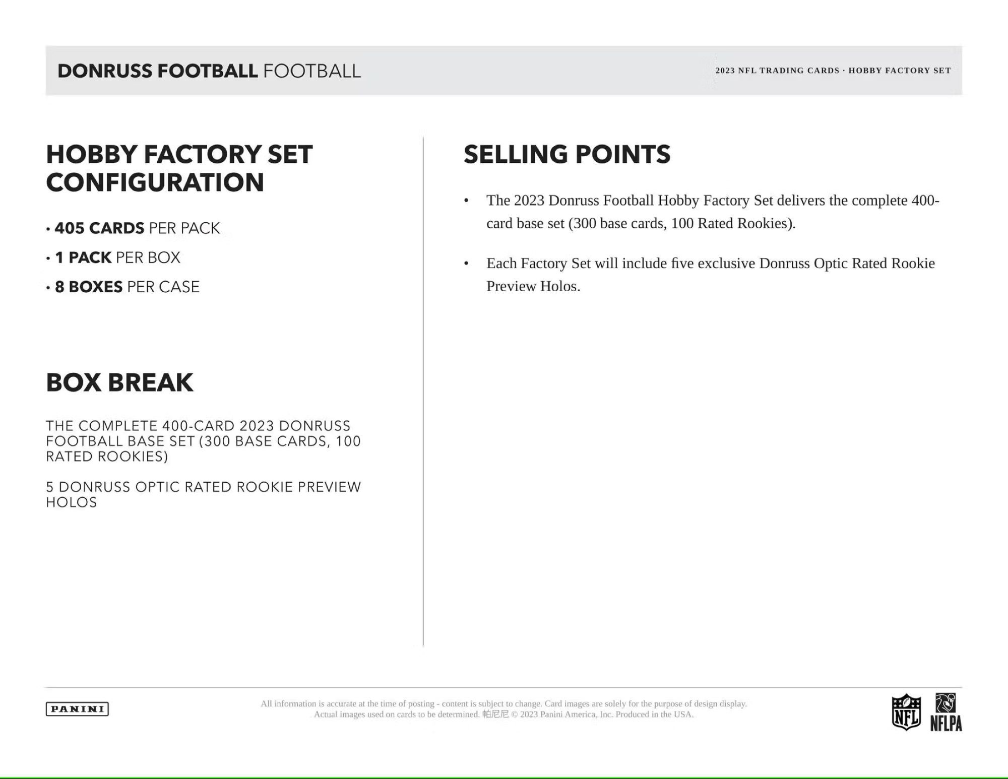 Each Hobby Factory Set will include 405 total cards (400 card 2022 Donruss Football base set & 5 Bonus Optic Rated Rookie Preview Holos).