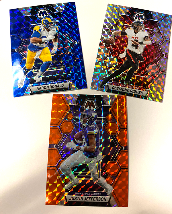 The colorful pageantry of the NFL's greatest stars and hottest rookies comes to life on Optichrome technology in mesmerizing 2023 Mosaic Football.