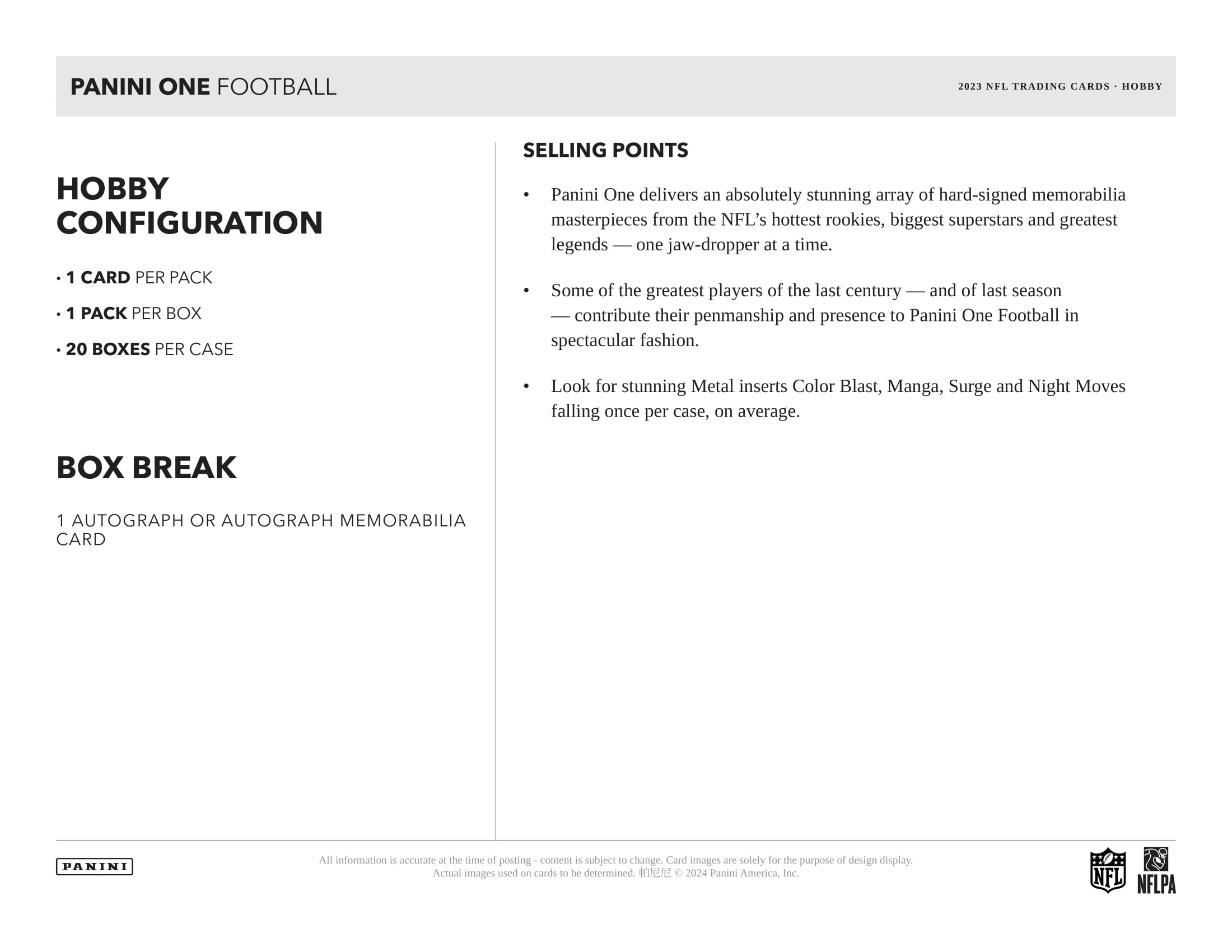 2023 Panini ONE Football NFL Hobby Box