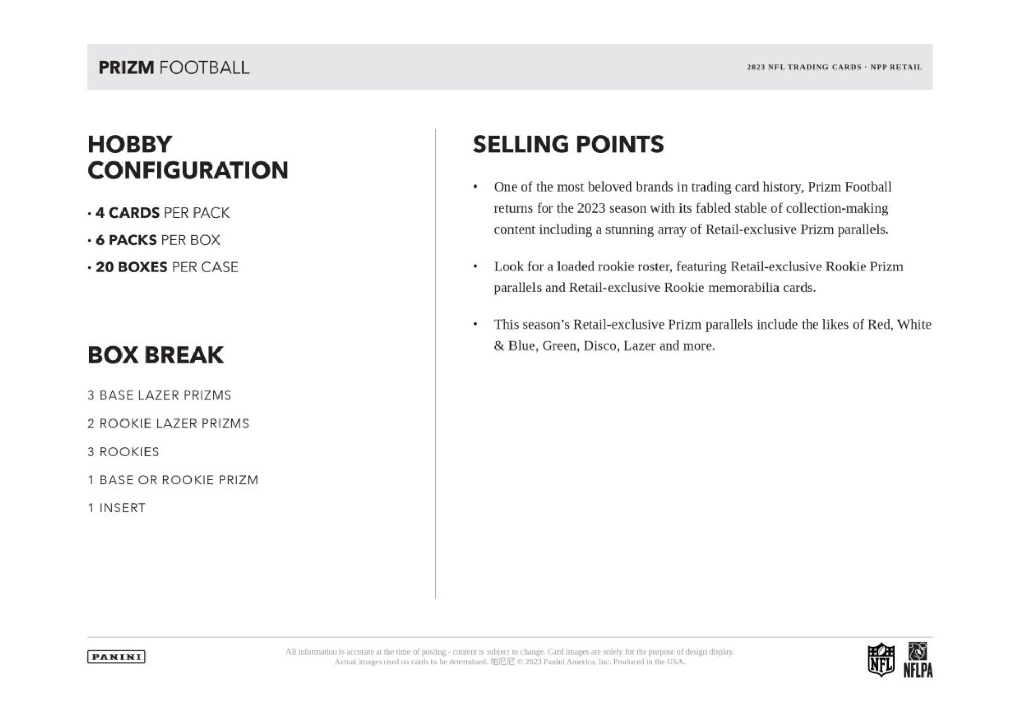 One of the most-beloved brands in trading card history, Prizm Football returns for the 2023 season with its fabled stable of collection-making content including iconic Prizm parallels, Color Blast and Manga inserts, RPAs and so much more.