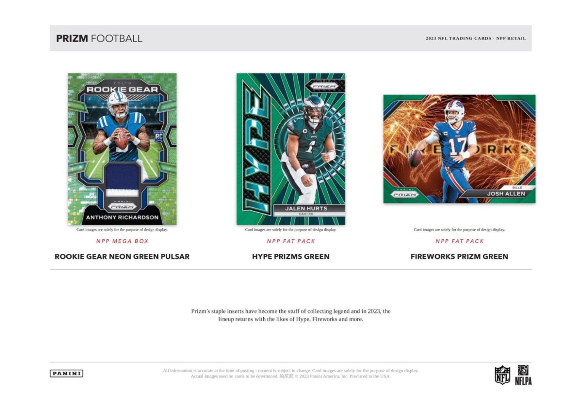 One of the most-beloved brands in trading card history, Prizm Football returns for the 2023 season with its fabled stable of collection-making content including iconic Prizm parallels, Color Blast and Manga inserts, RPAs and so much more.