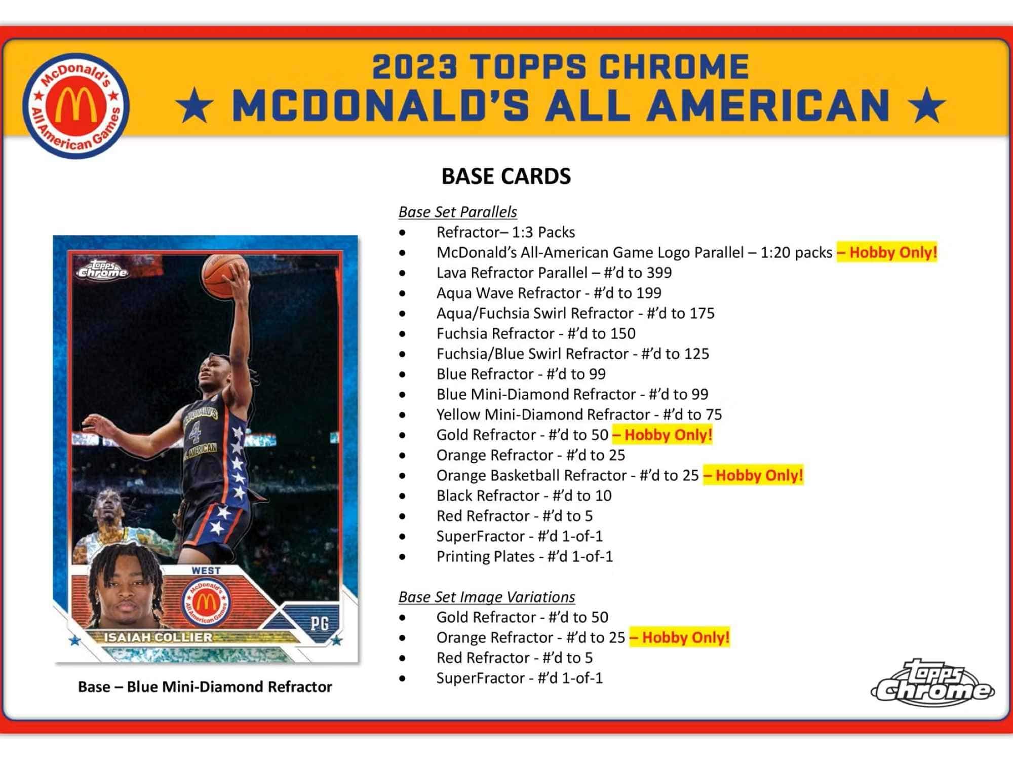 2023 Topps Chrome McDonald's All American Game continues to serve collectors as on the THE top places to prospect young basketball talent with some of the first cards for these future stars!