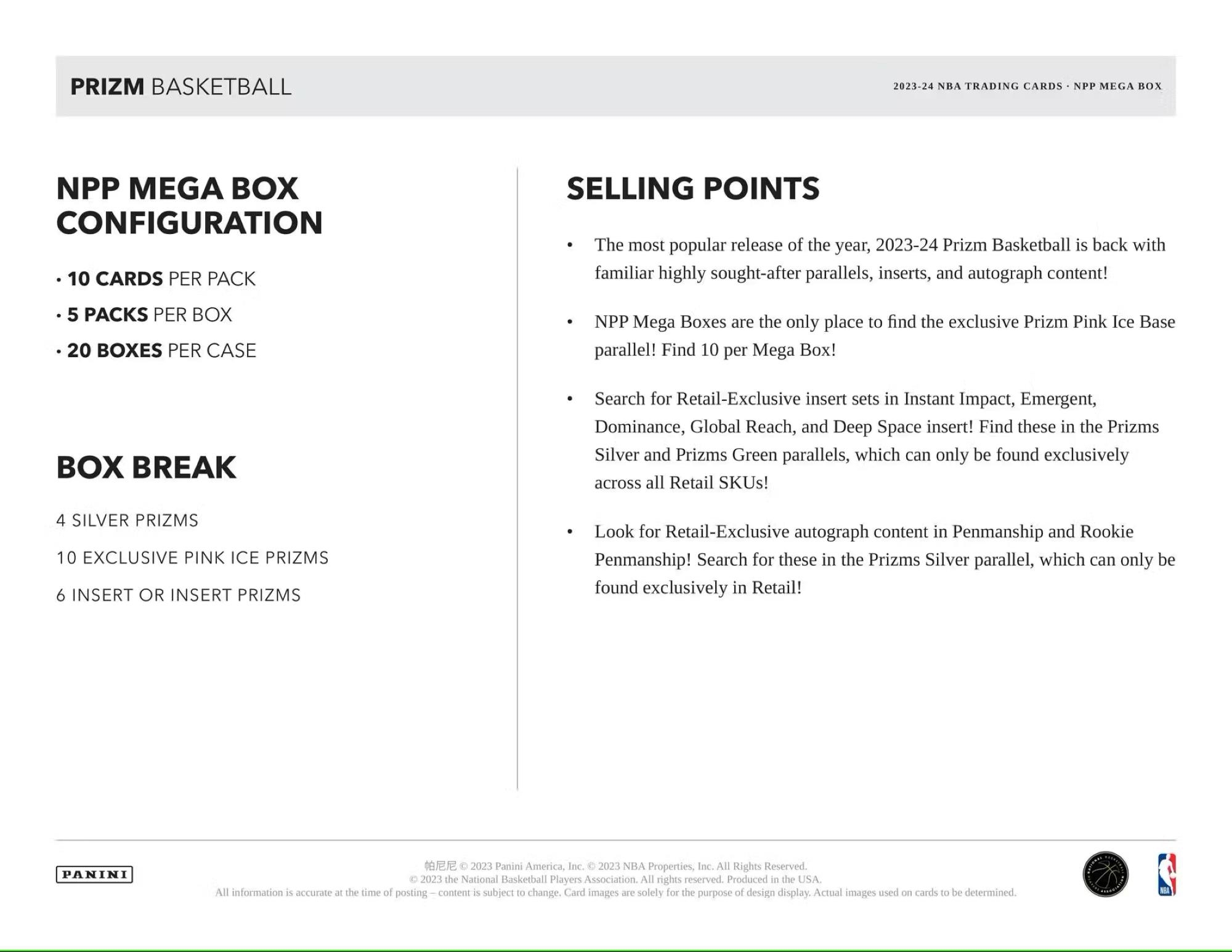 BASE: Look for NPP Mega Box-Exclusive Pink Ice Base Parallel! Find the top players from around the league including the new 2023 NBA Draft Class!