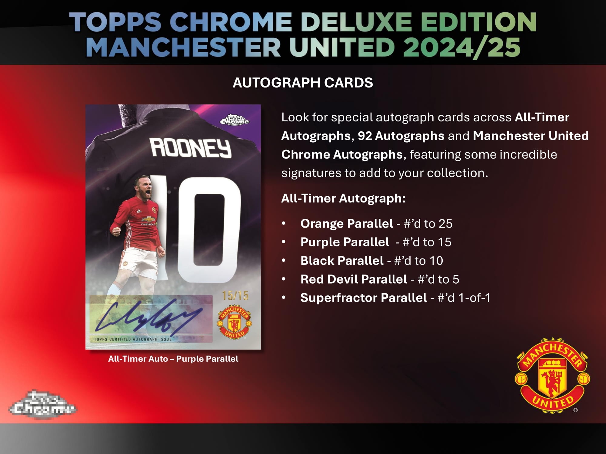 Look out for the unique 1/1 Superfractor "Backed by the Red Devil Rooney Autograph Relic", dedicated to Wayne Rooney