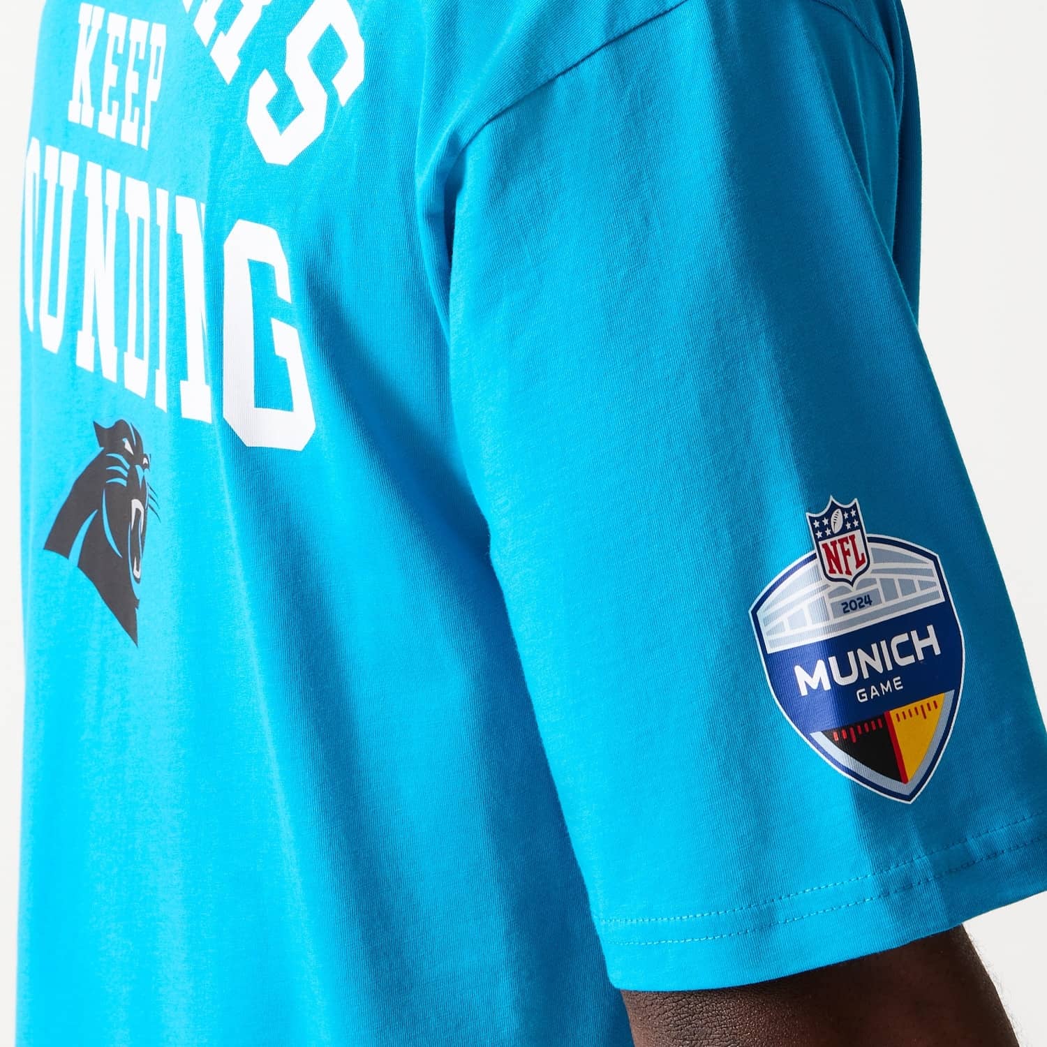 Get the official New Era American Football Men's T-Shirt of the Carolina Panthers, exclusively designed for the 2024 NFL season game in Munich! This blue oversized T-shirt, featuring the iconic "Keep Pounding" slogan, is perfect for supporting your team in the thrilling showdown against the New York Giants.