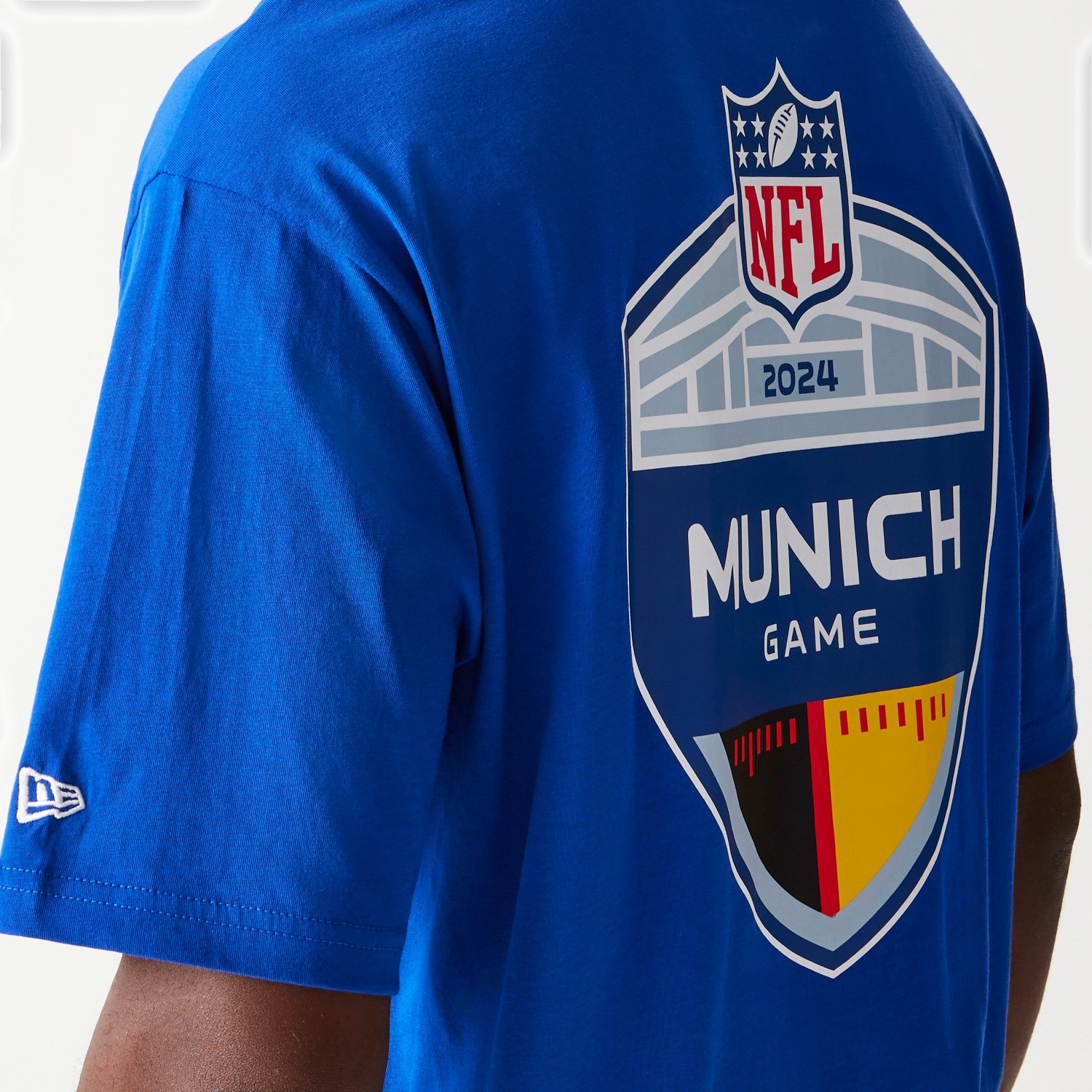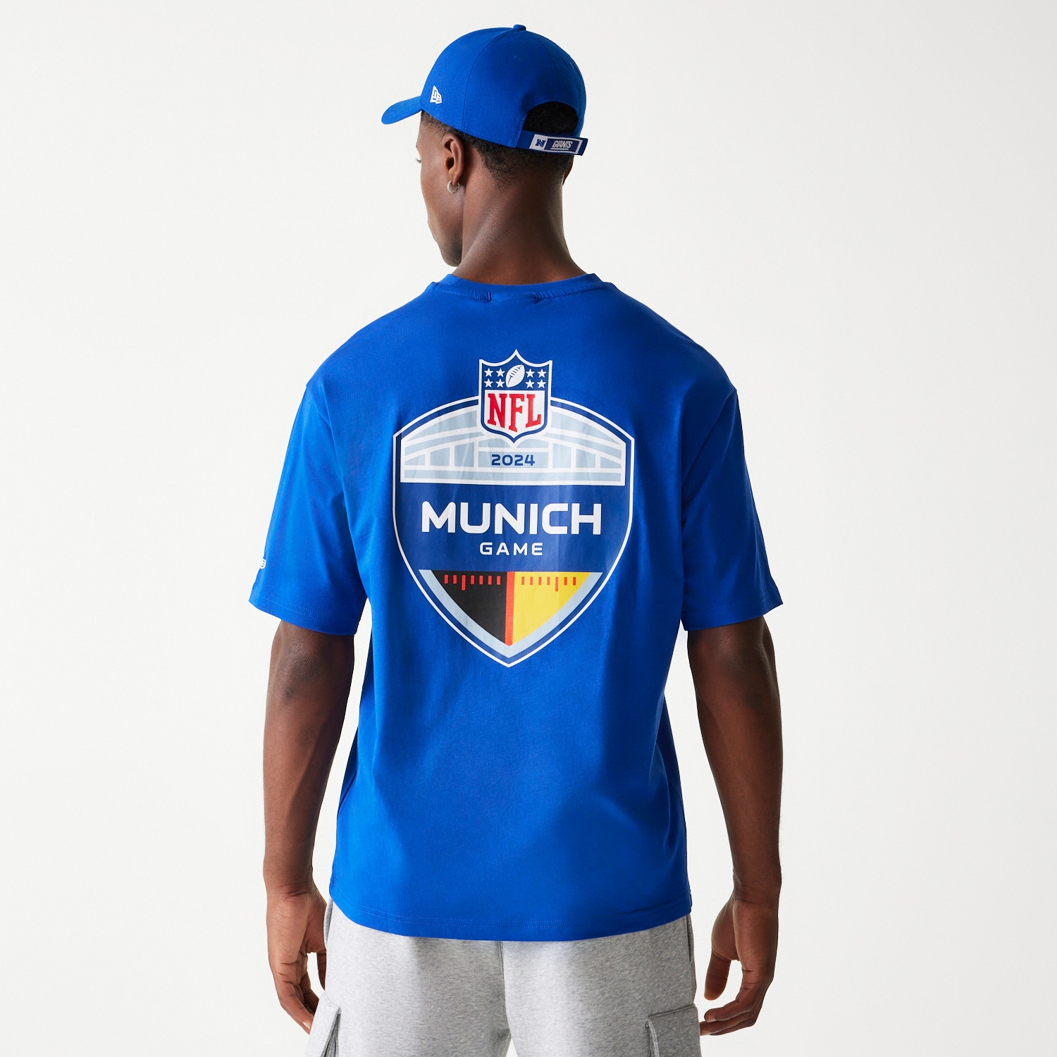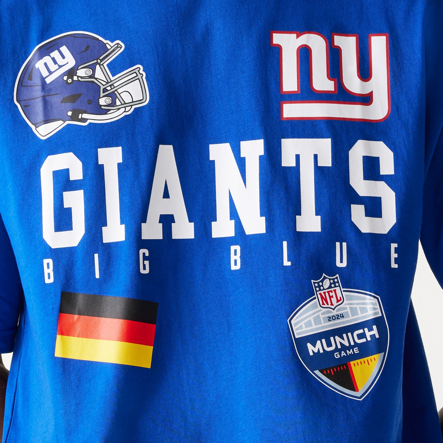 With its cool, relaxed look, the blue oversized T-shirt stands out. Made from high-quality cotton, it not only offers maximum comfort but also ensures you make a statement in the stands or at any fan event in Munich 2024. Celebrate the Giants and the NFL live in Munich with this special fan item, specifically created for this historic game. Get ready for an unforgettable experience and support your team in style.