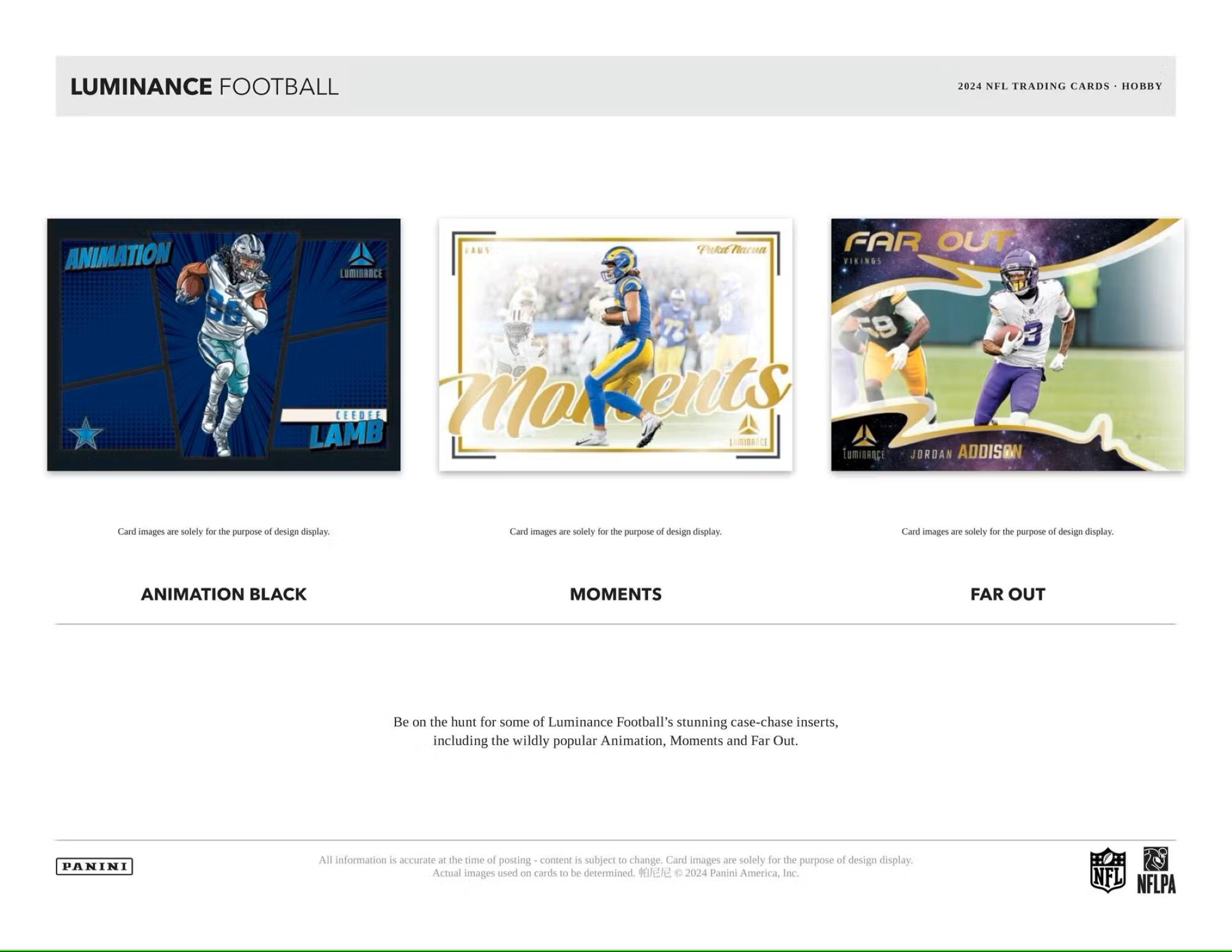 Be on the hunt for some of Luminance Football's stunning case-chase inserts, including the wildly popular Animation, Moments and Far Out.