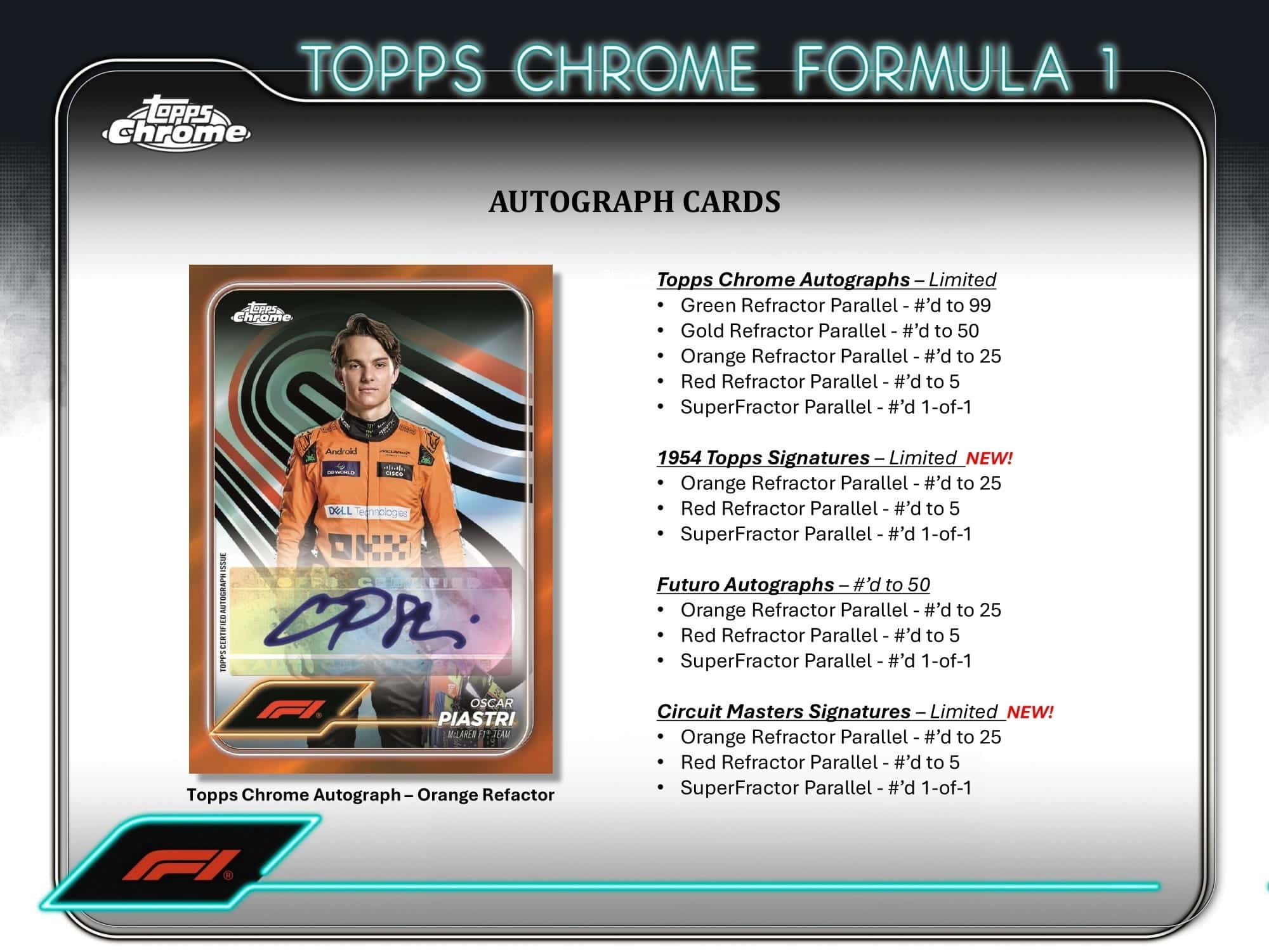 Look for Chrome Autographs from top F1 & F2 Talents (1:2 Boxes).