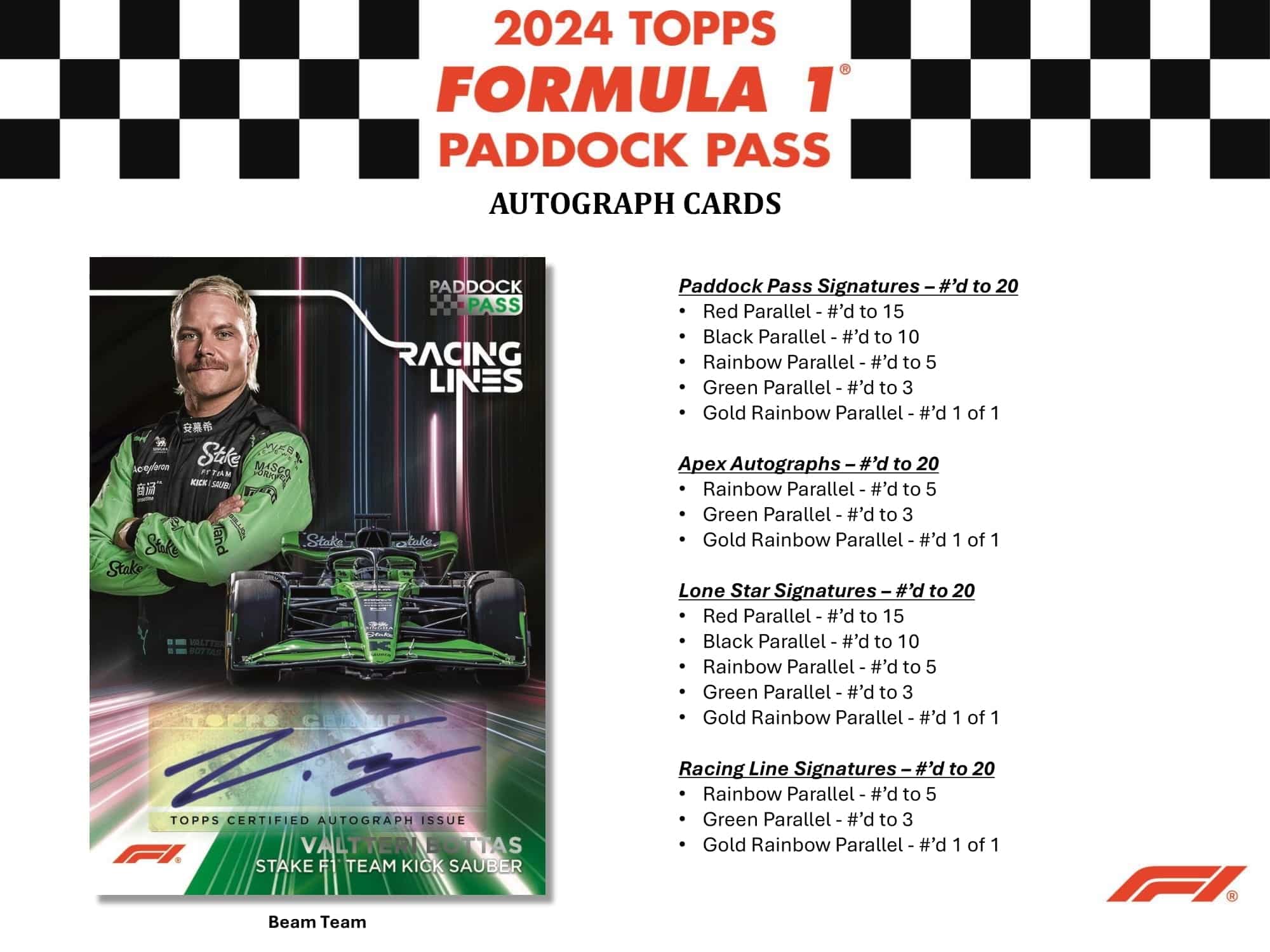 Look for Paddock Pass Autographs and Relics from top F1 and F2 talents - a must-have for any motorsport enthusiast!