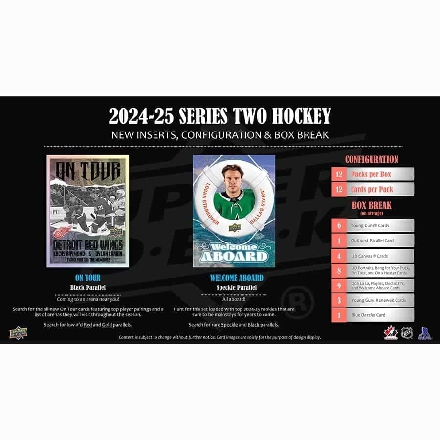 Series 2 comprises the next 250 cards of the 2024-25 Upper Deck base set, which is the most widely collected base set in hockey each year. The set includes 198 veteran cards, 49 Young Guns (the most anticipated rookie cards of the season!), and 3 checklists.