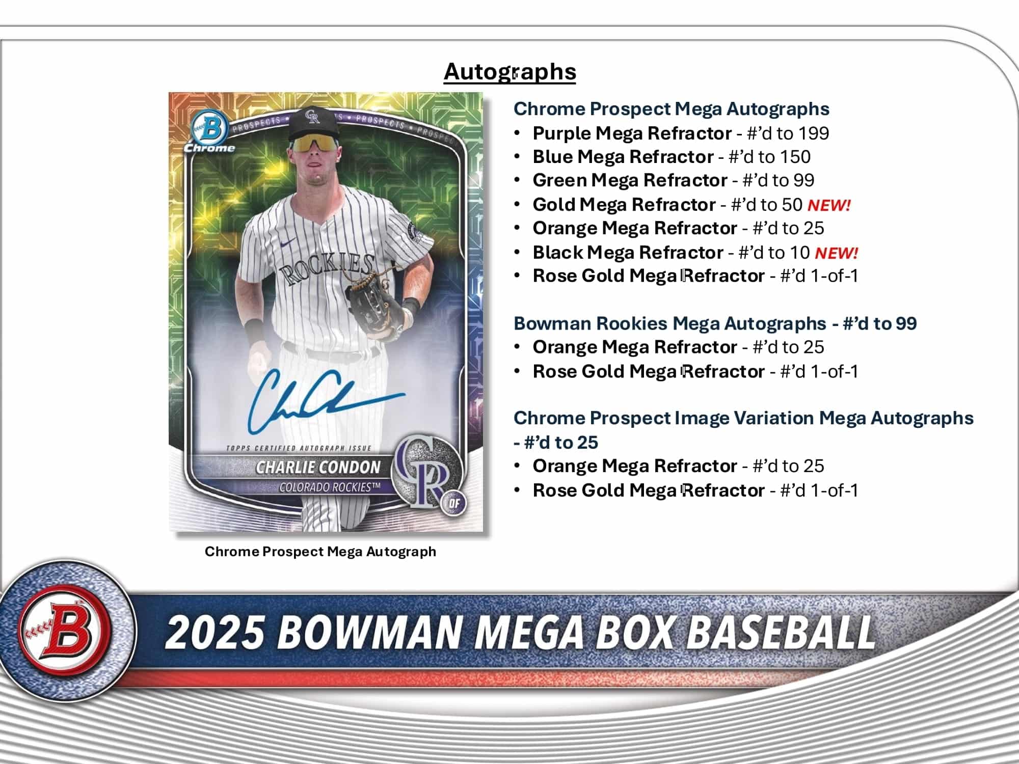 Chrome Prospect Mega Autographs in Purple (#/199), Green (#/99), Orange (#/25), and Black 1-of-1!
