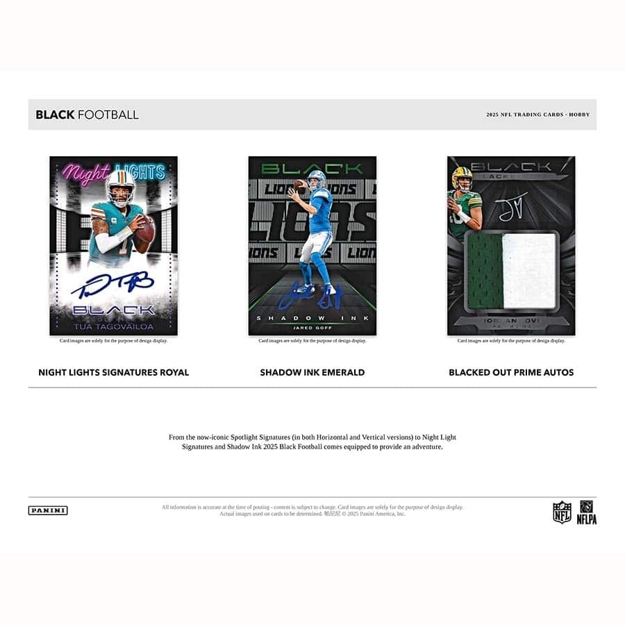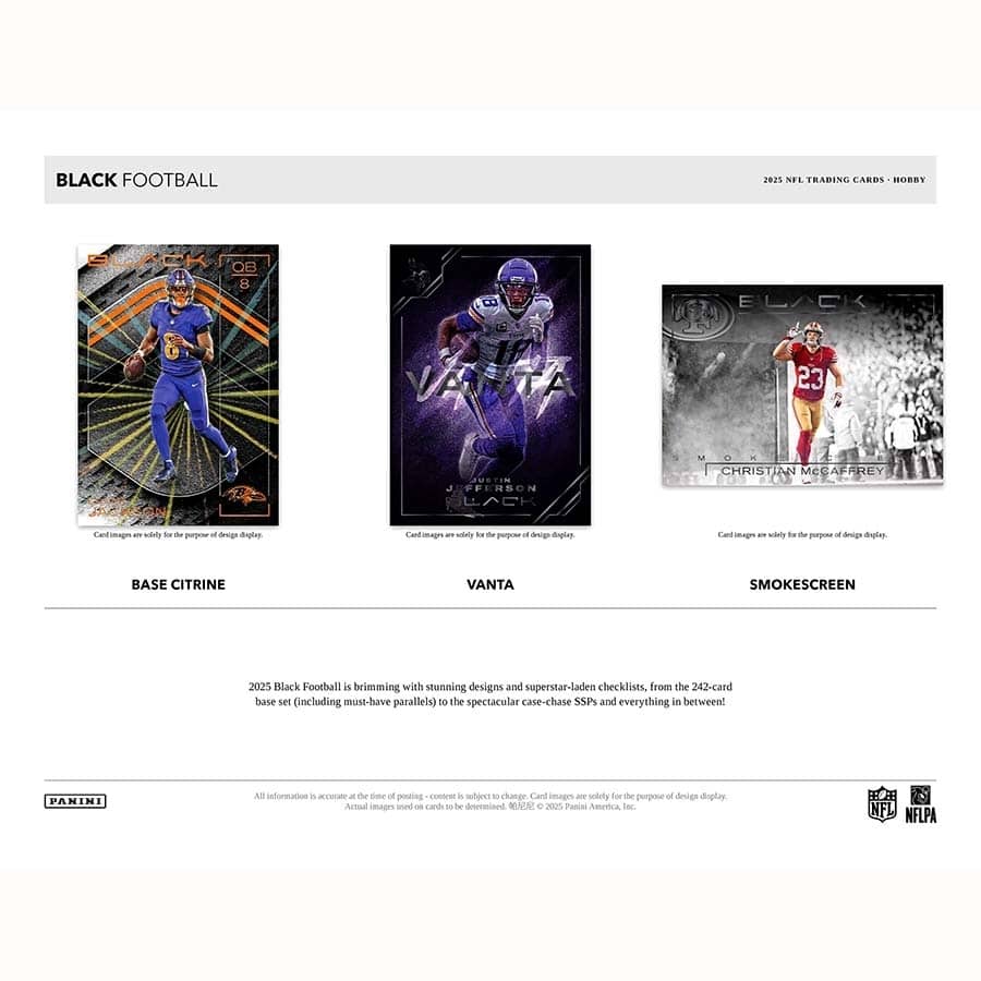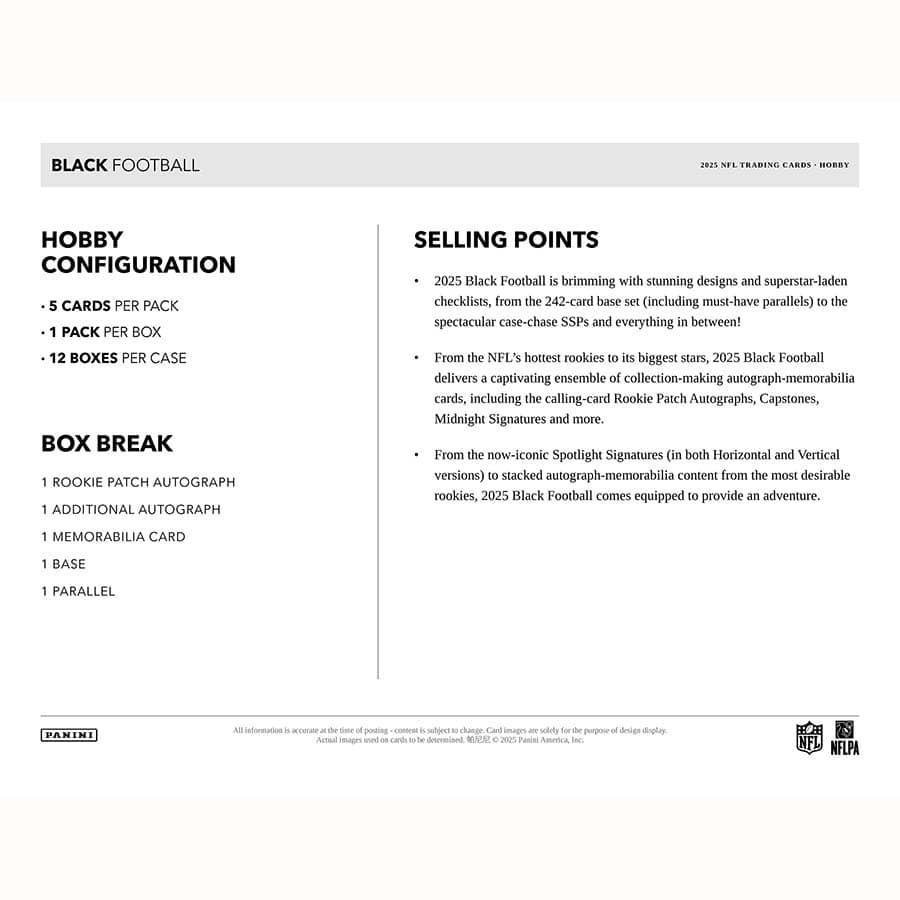 Panini Black Football 2025 returns loaded with stunning designs, premium content, and a star-studded checklist that spans from the NFL's hottest rookies to the league's biggest icons.