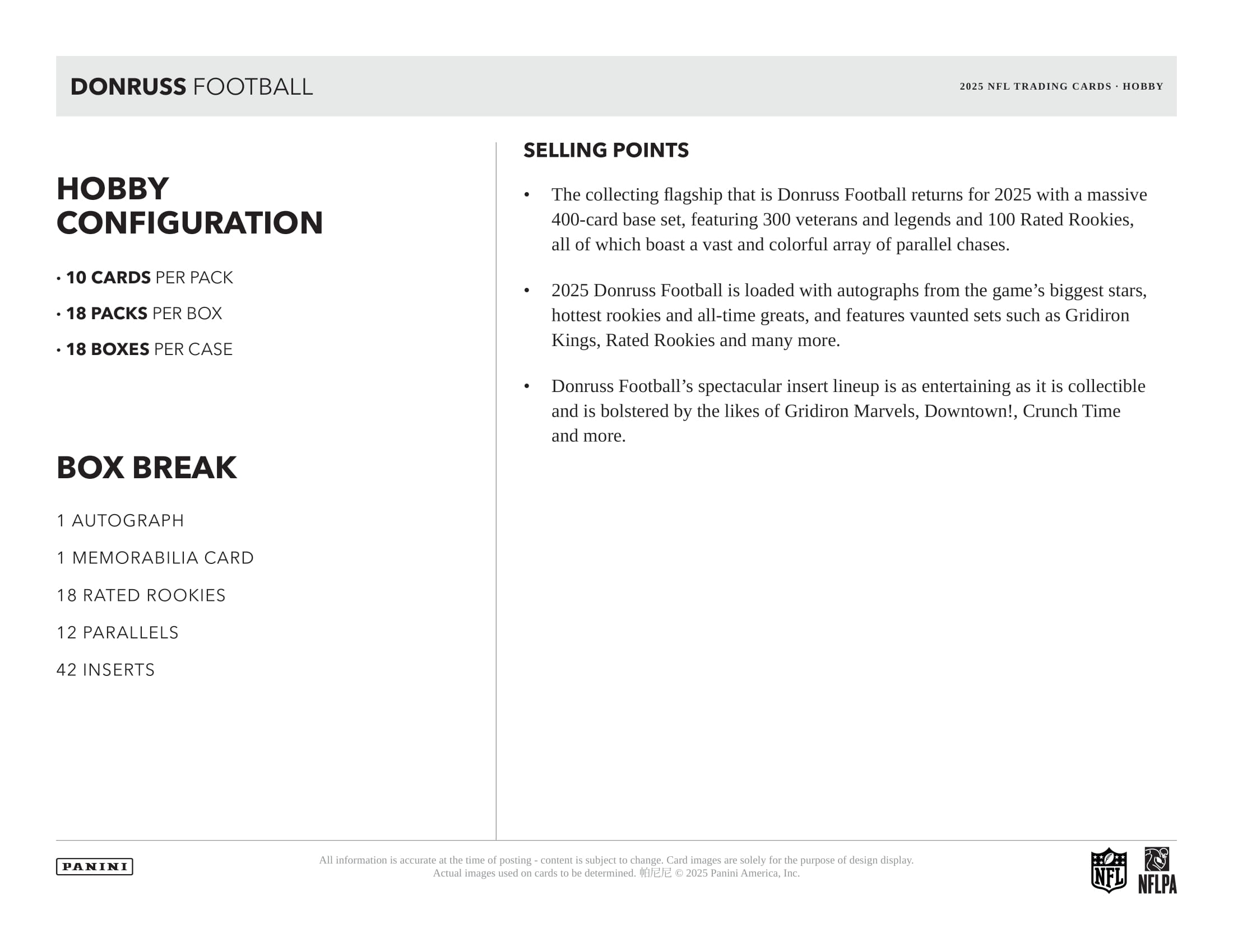 - A massive 400-card base set featuring 300 veterans & legends and 100 Rated Rookies - the most iconic rookie subset in the hobby