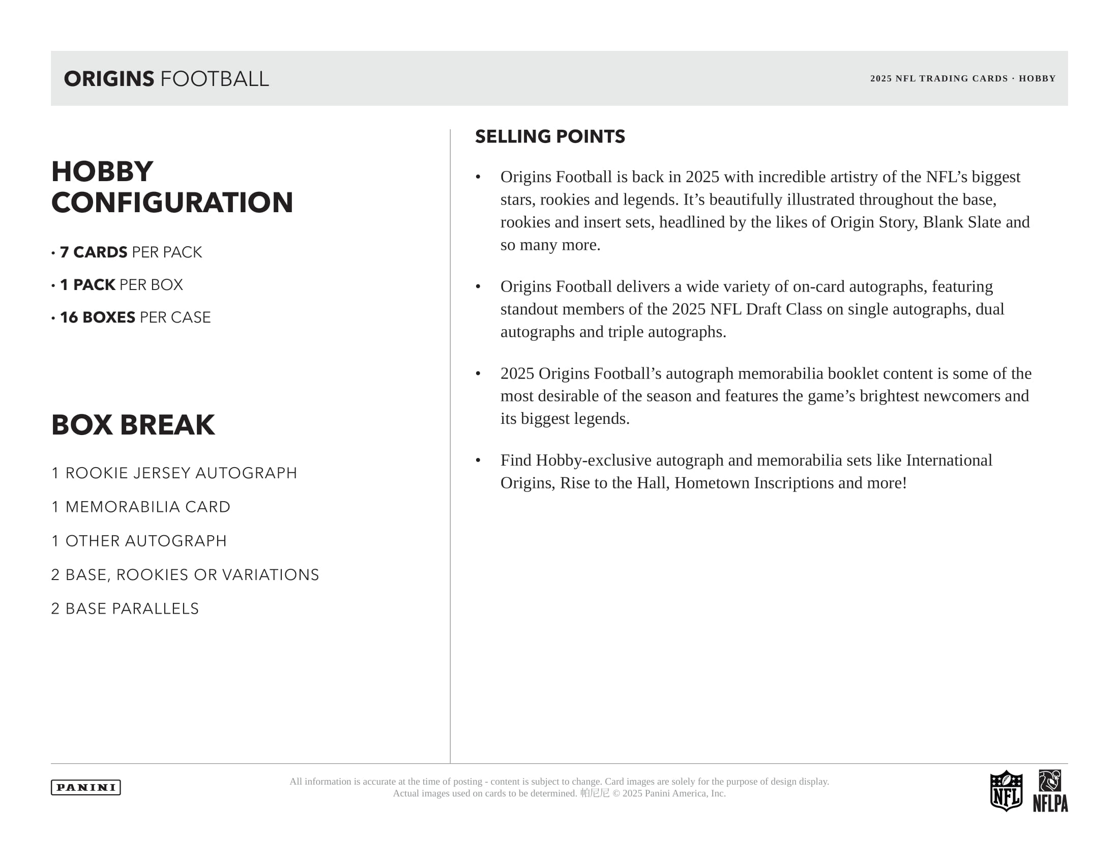 Whether you're chasing the next big rookie or iconic NFL names, Origins Football is one of the most collectible and visually striking sets of the year!