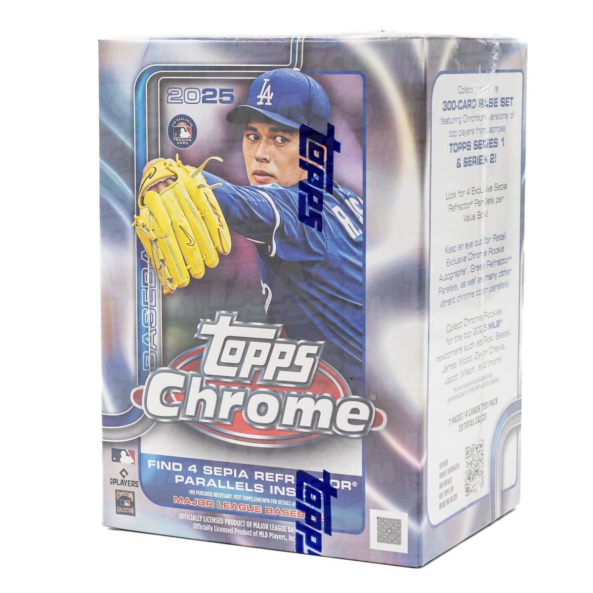 20 Packs Per Box, 4 Cards Per Pack. Each Hobby Box contains, on average: 1 Chrome Autograph! 2025 Topps Chrome Baseball has it all! Chase a fun mix of jaw-dropping inserts and exciting chrome...