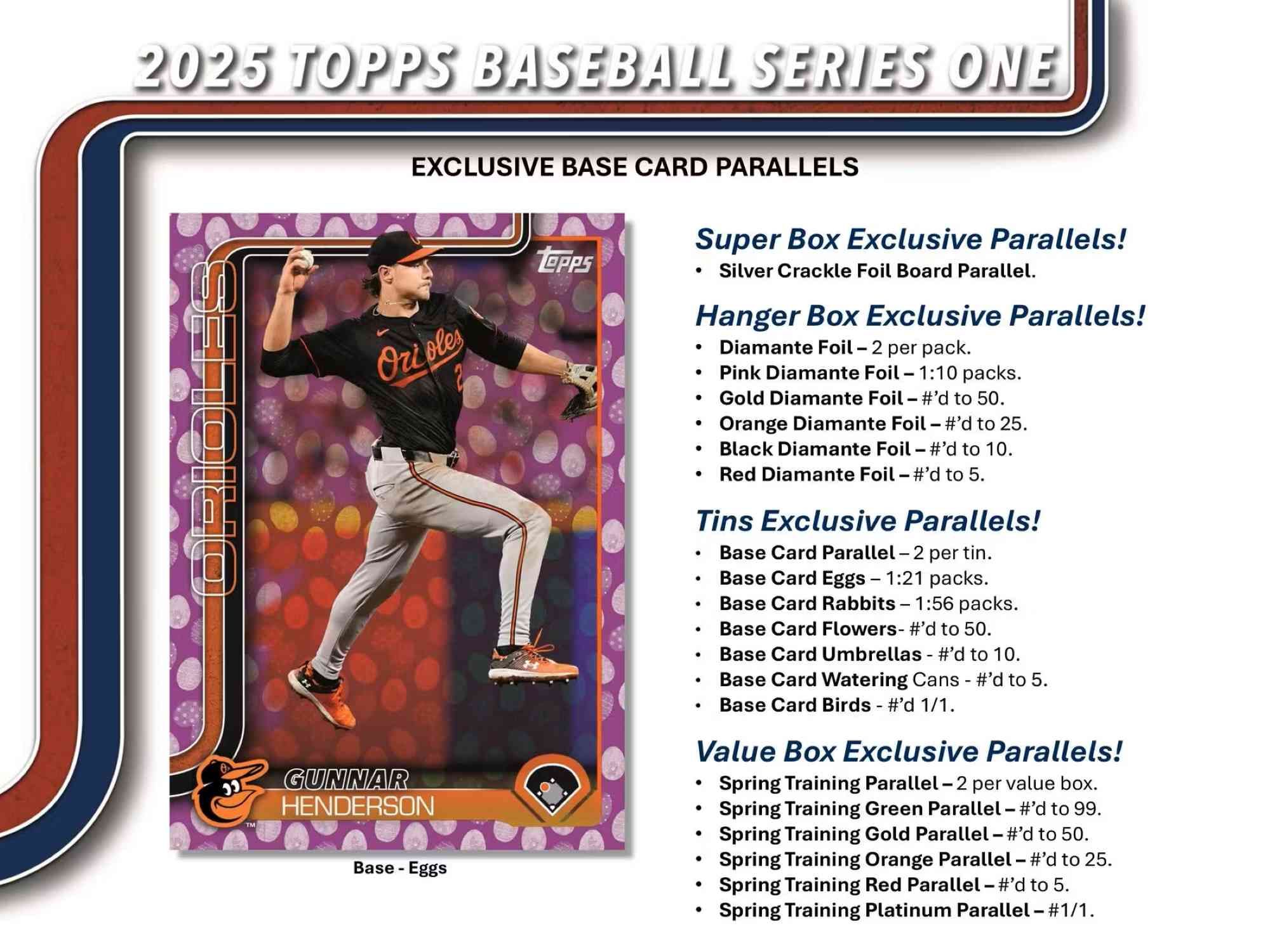 Despite the large number of parallels, some long-running themes like Black, Father's Day Blue and Mother's Day Pink are not on the 2025 Topps Series 1 Baseball checklist.