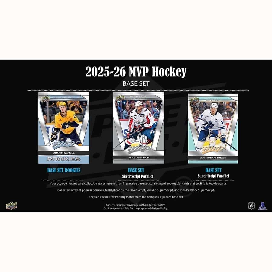 Start your 2025-26 hockey card collection with Upper Deck MVP, packed with exciting inserts, rookie content, fun sticker cards, and colorful parallels - all at a collector-friendly entry point!