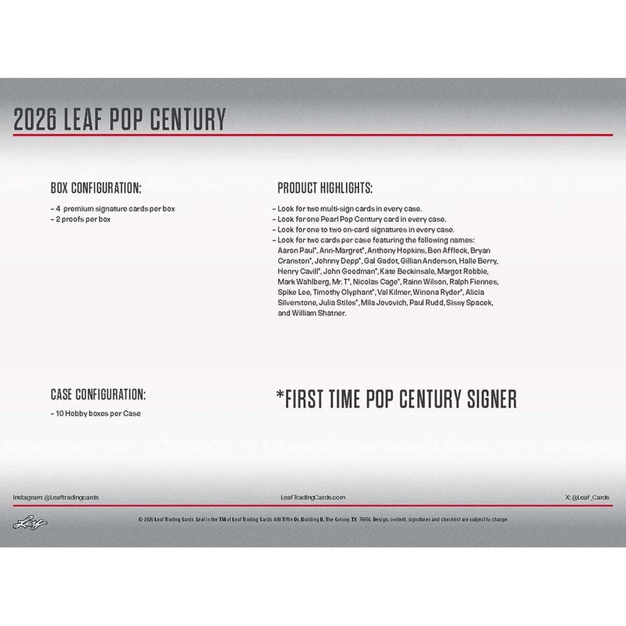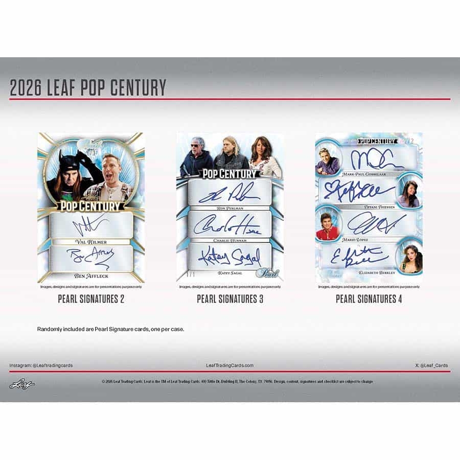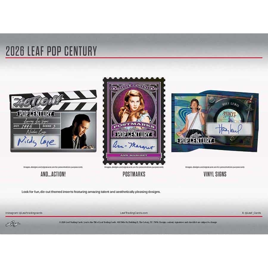 Leaf proudly presents the 2026 edition of one of the Hobby's most popular pop culture products: Leaf Metal Pop Century. This release delivers a spectacular lineup of top names from film, television, and entertainment.
