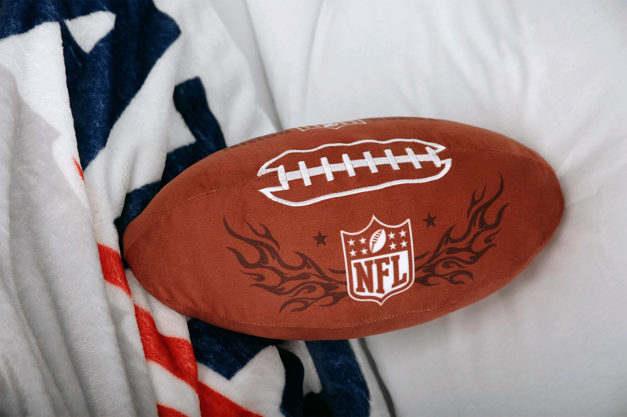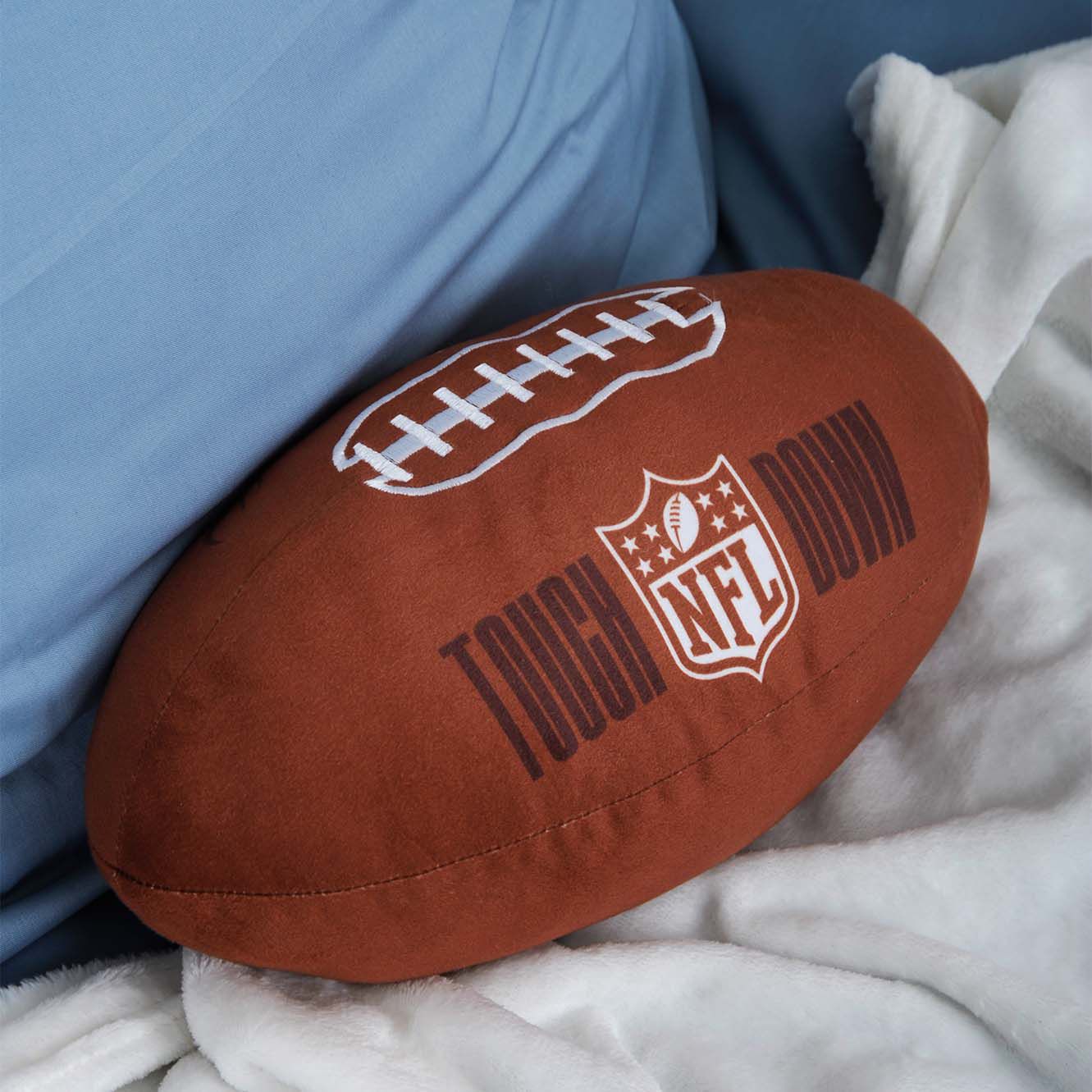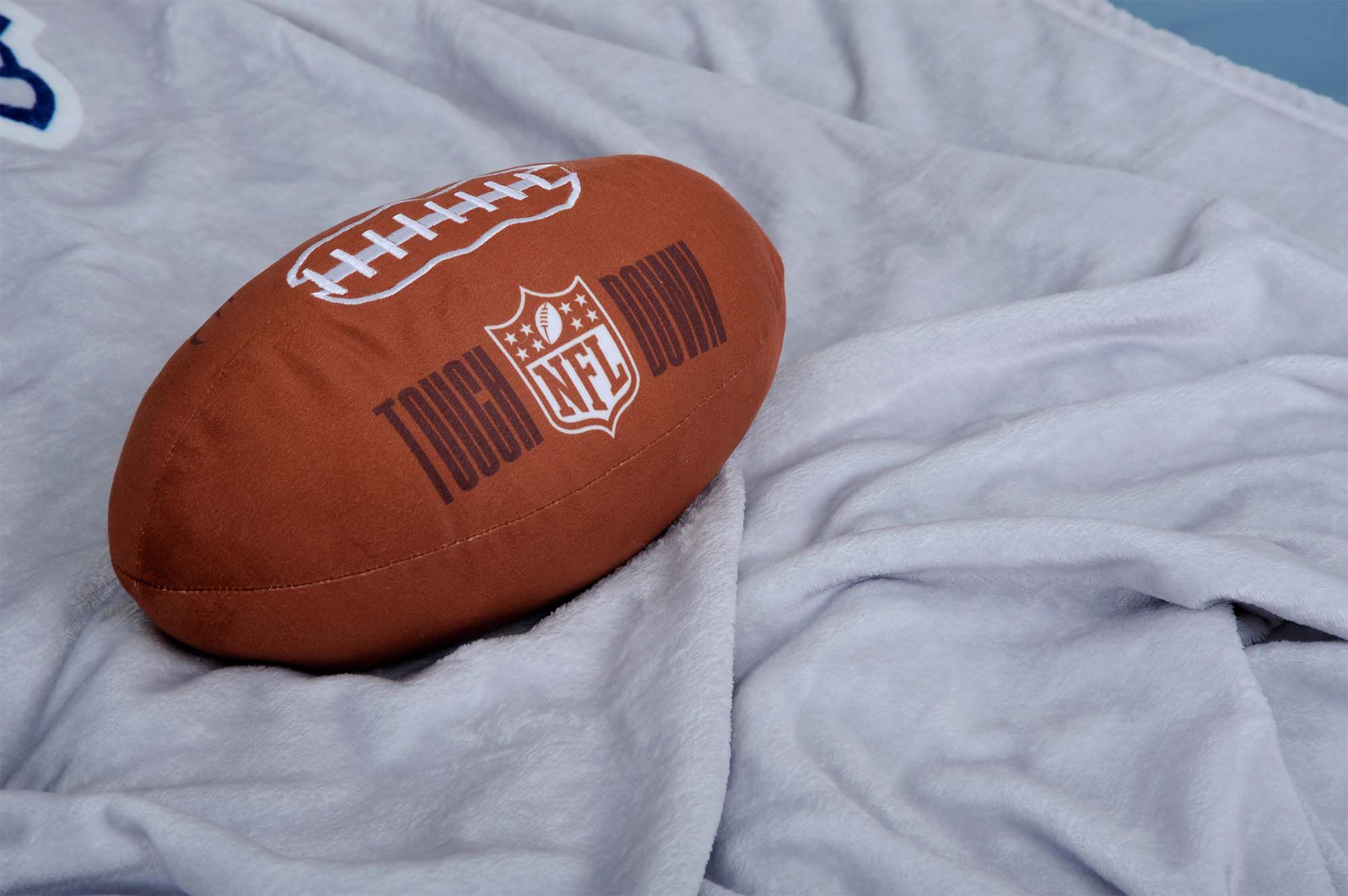 Snuggle, decorate or have your best dreams with this official NFL 3D pillow in form of an American football.