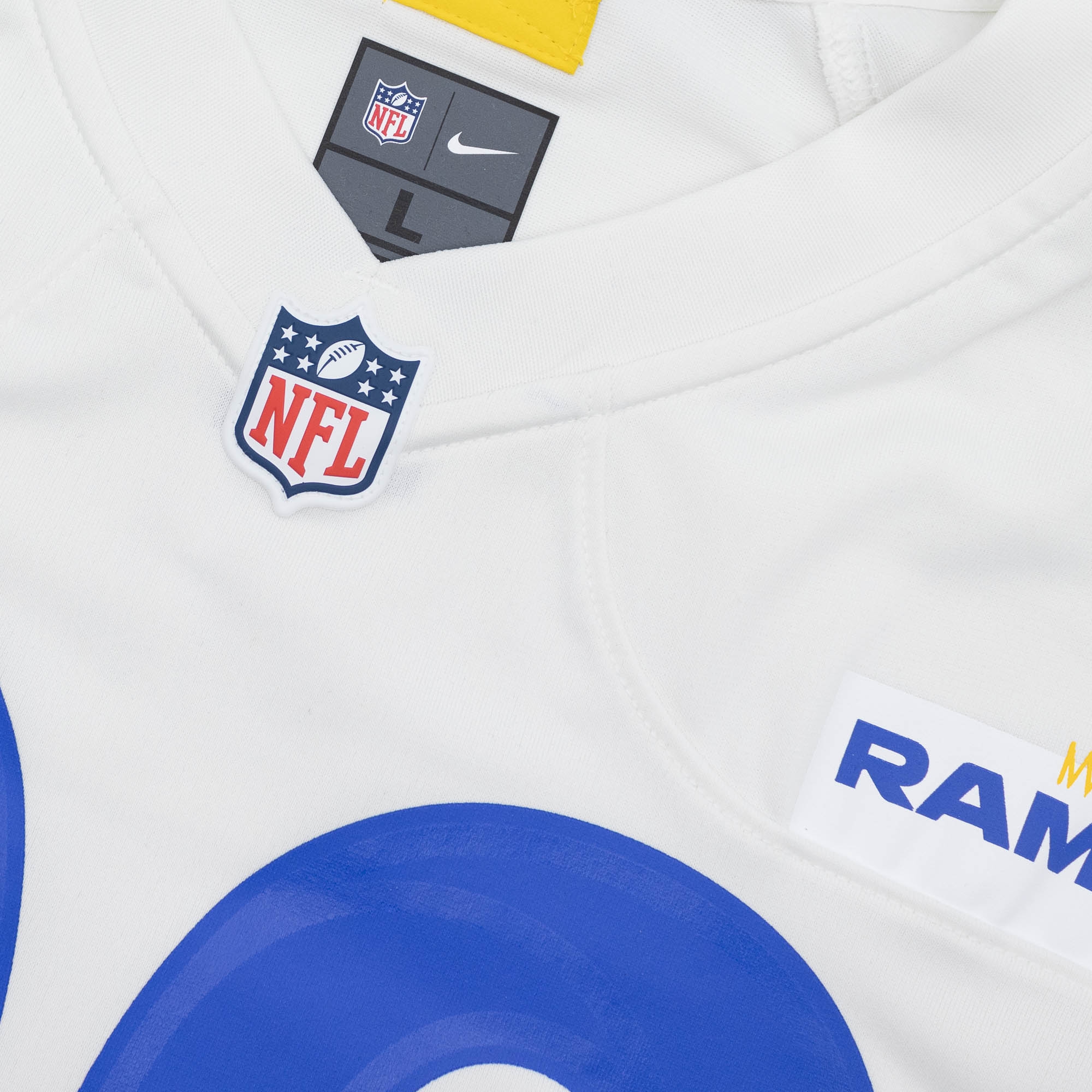 Nike Men's NFL White Game American Football Jersey from Los Angeles Rams Superstar Aaron Donald.