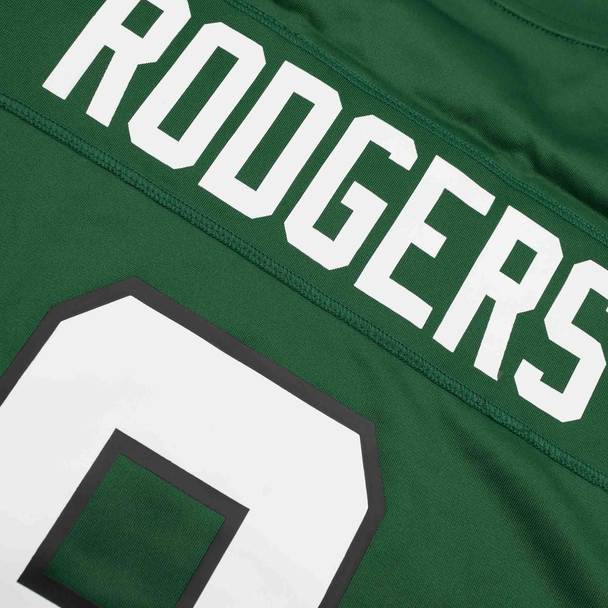 Nike Men's NFL Green Game American Football Jersey from New York Jets Quarterback Aaron Rodgers.