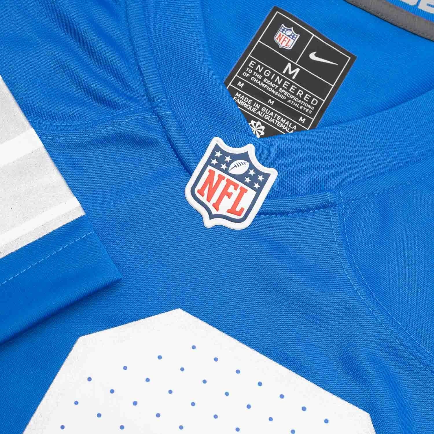 - Authentic Detroit Lions Details: Featuring printed numbers, logos, and sewn-on emblems, this jersey reflects the authentic look of the Lions' on-field uniform. The NFL shield on the collar, team stripes on the sleeves, and the "One Pride" wordmark on the inside collar add extra touches of official style.
