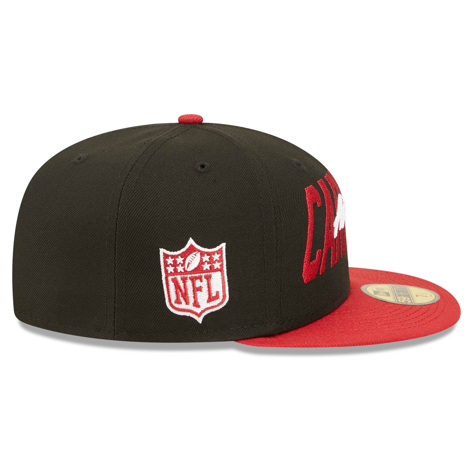 The 2022 NFL Draft Fitted Hat by New Era comes with a sporty team script on front and team colored NFL shield on right cap panel. Closed back features official Arizona Cardinals team logo.