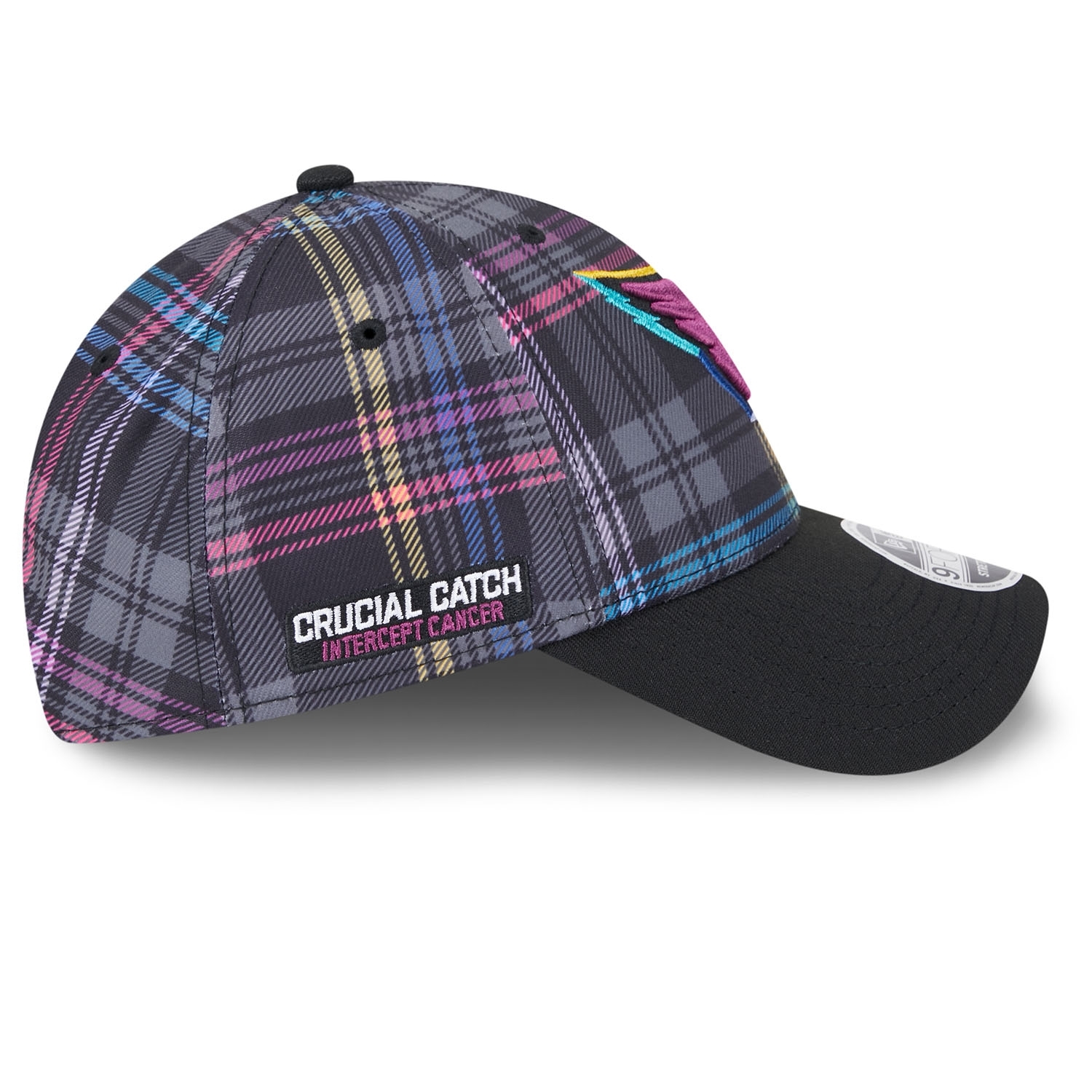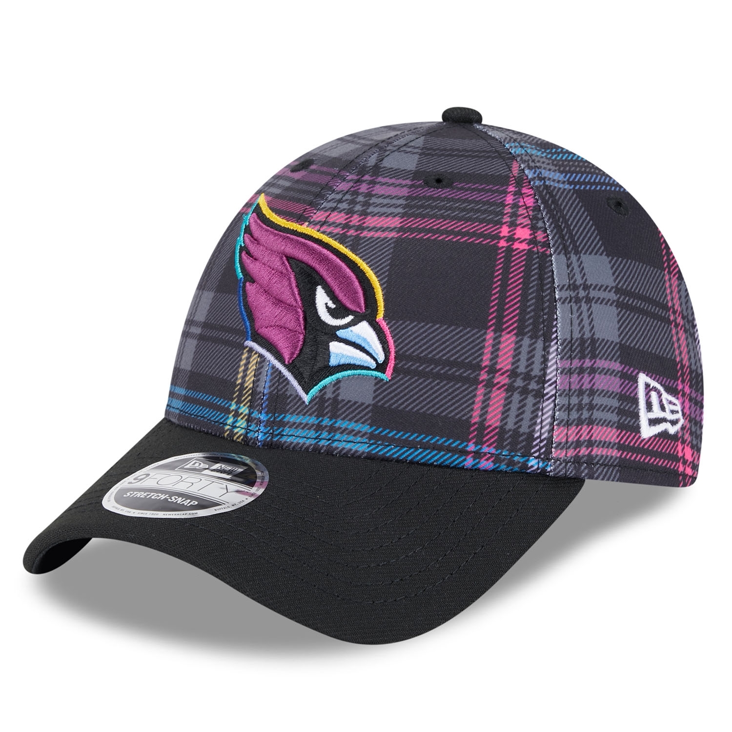 Support the global fight against cancer with the official New Era 2024 NFL Crucial Catch On-Field Cap. This adjustable fit NFL cap is worn on the sidelines during the 2024-25 Crucial Catch campaign in October. The front of the cap is embroidered with the brightly accented Arizona Cardinals team logo. The right side features the "CRUCIAL CATCH - INTERCEPT CANCER" patch, while the back is adorned with the embroidered NFL logo. The sublimated plaid design on all six panels in the signature Crucial Catch colors gives it a unique look.