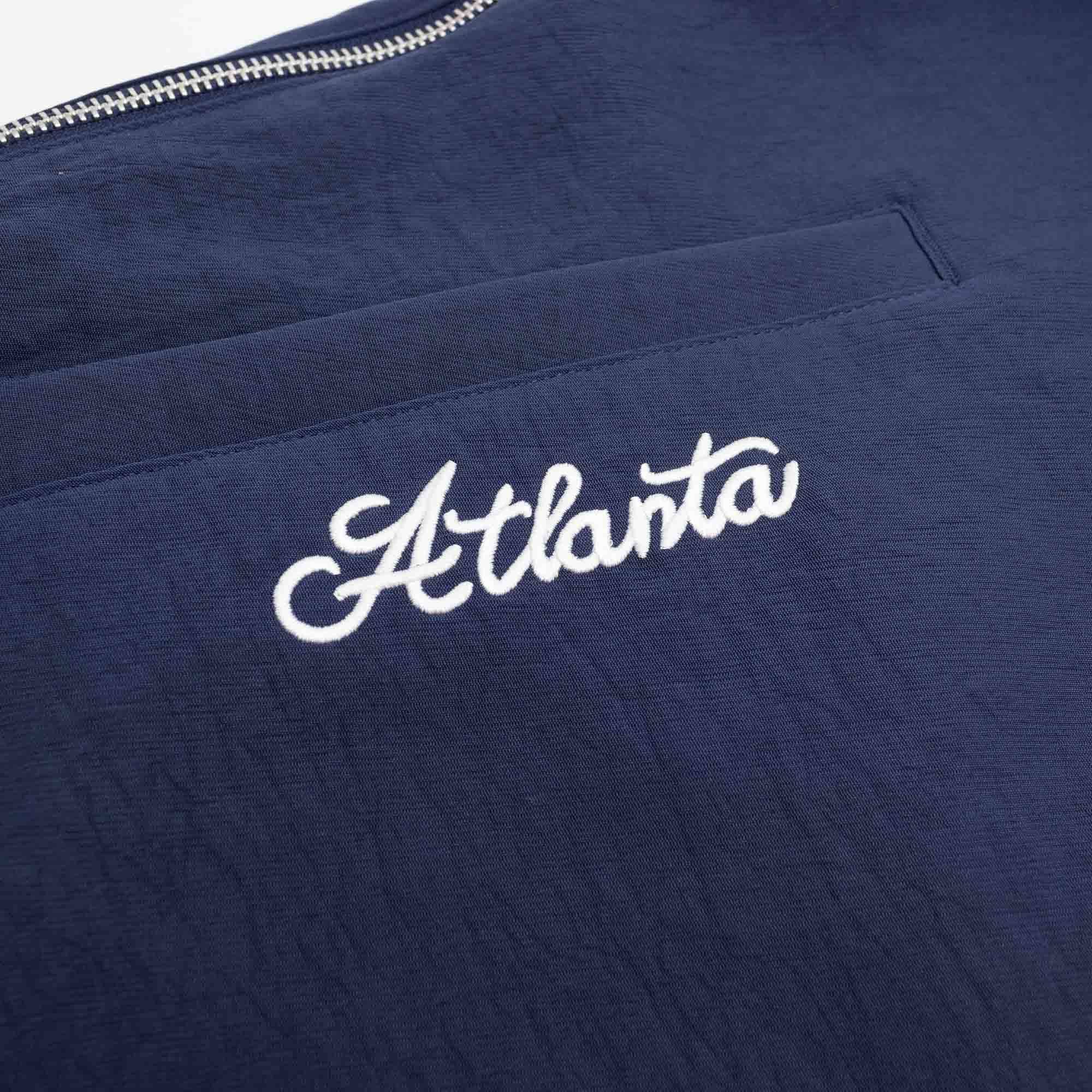 The Nike Authentic Collection Bomber Jacket is an absolute must-have for your 2024 team outfit. The Atlanta Braves team logo is expertly embroidered on the left chest, while the back impresses with the MLB batterman logo. The ribbed sleeve ends are coordinated in the team colors, providing a classic contrast to the jacket's main color. Nike logo embroidered on right chest, team name emboirdery above right side pocket.