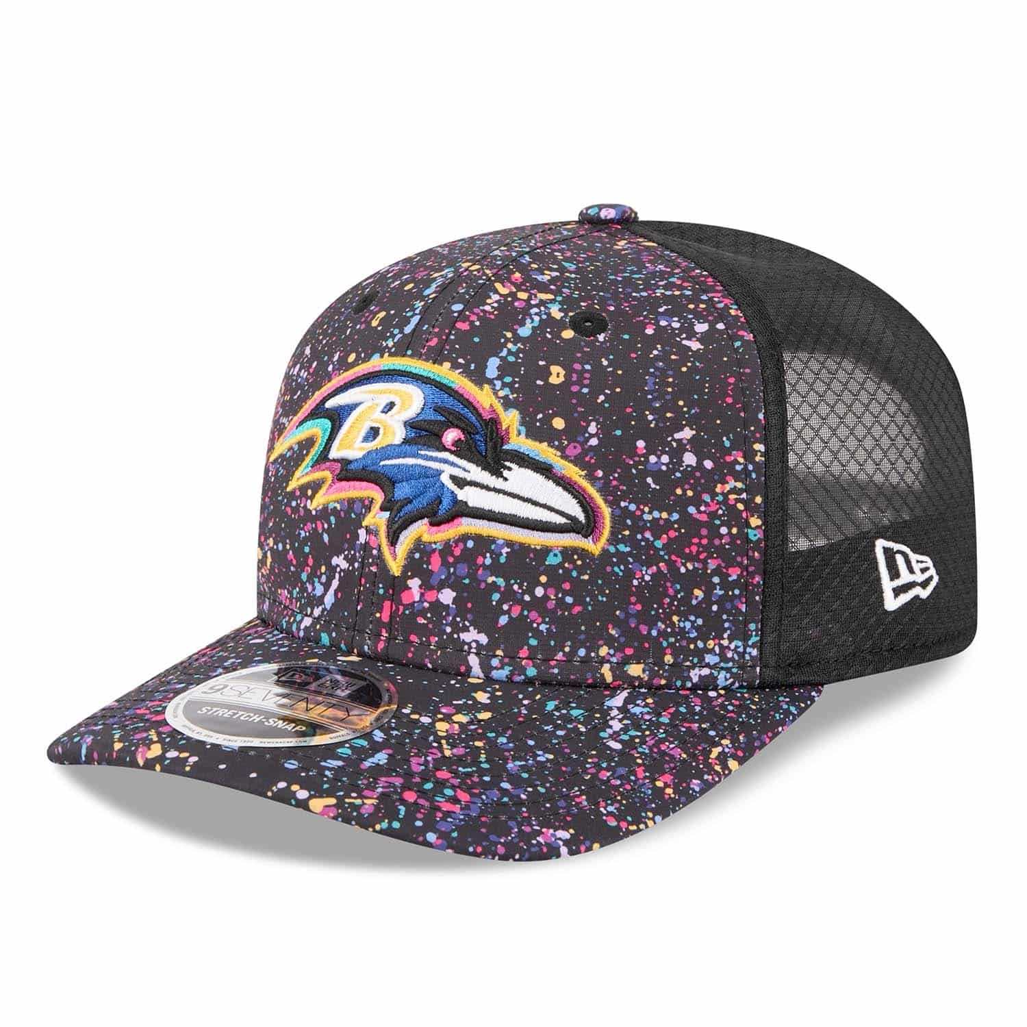 New Era American Football Official 2025 NFL Crucial Catch Collection 9SEVENTY Trucker Stretch-Snapback Hat from your Baltimore Ravens.