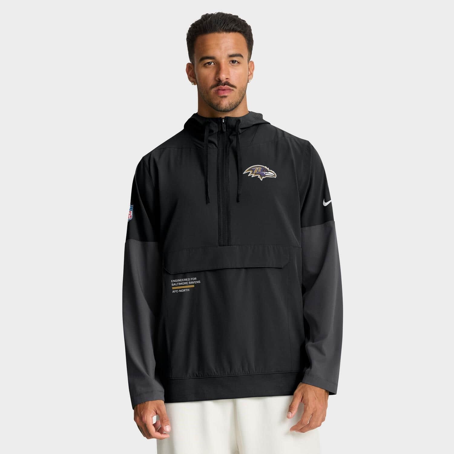 Nike Men's NFL American Football Alternate 1/2-Zip Anorak Jacket from the Baltimore Ravens from the official 2025 NFL On-Field Sideline collection.
